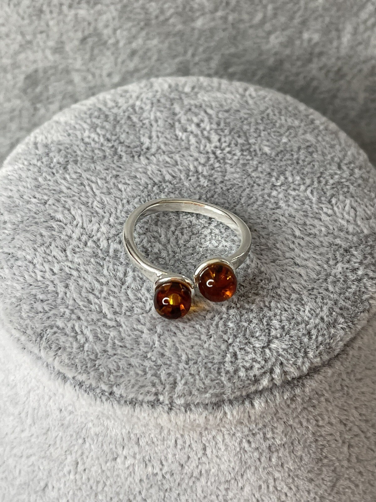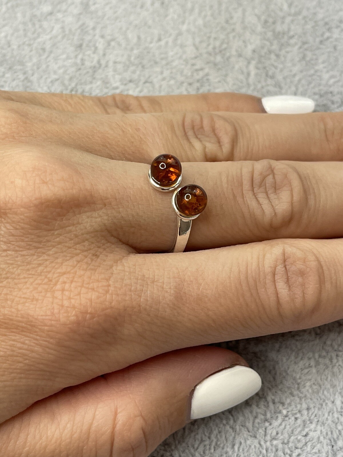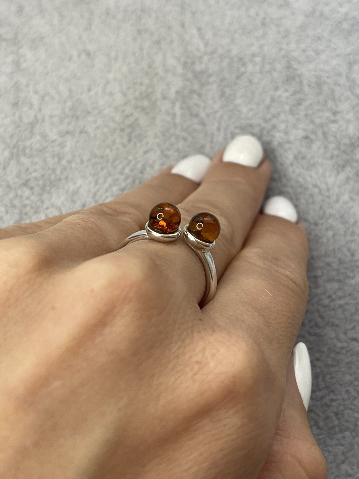 как выглядит Natural Amber Stone Ring with Sterling Silver. COGNAC Color Amber Ring 6US фото
