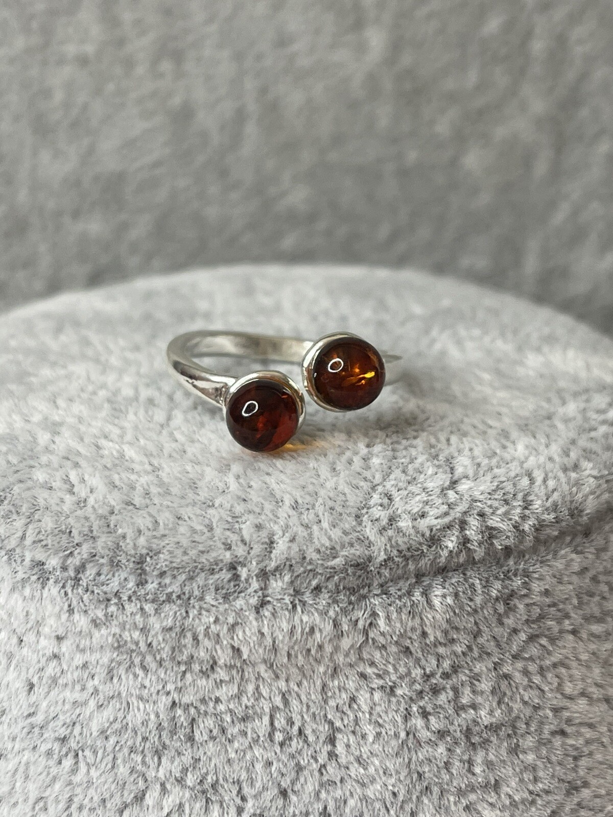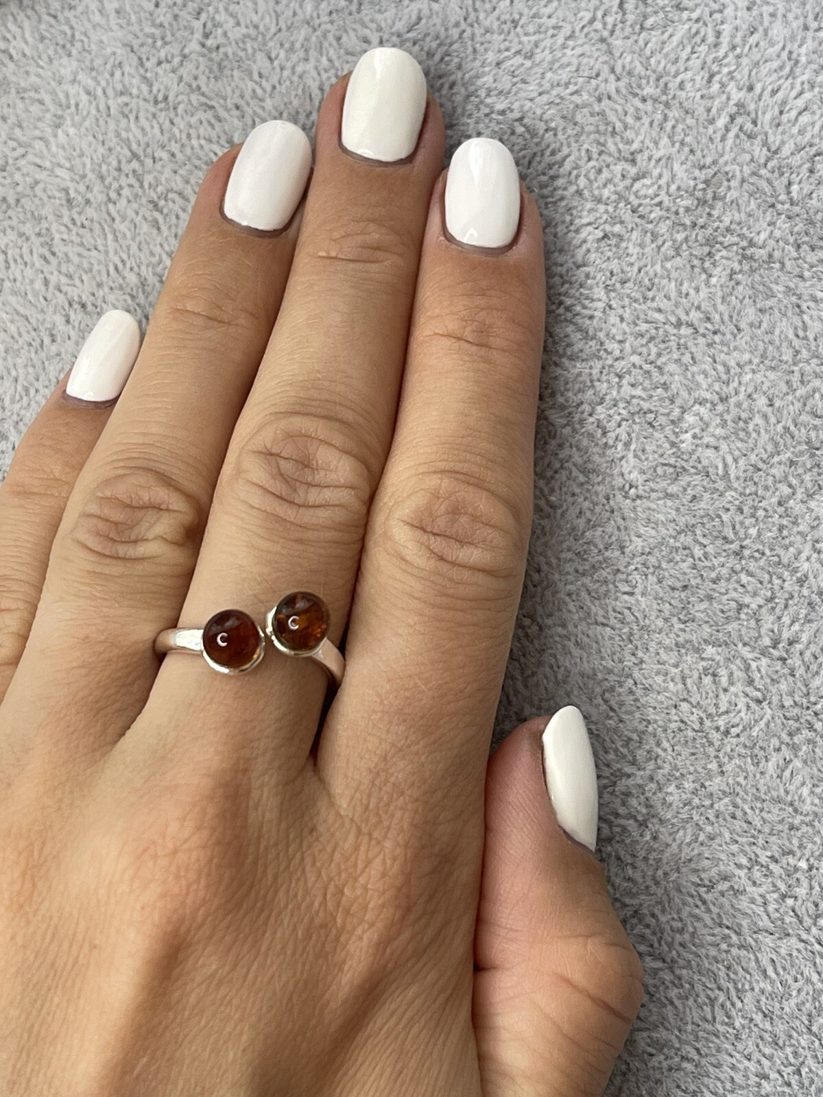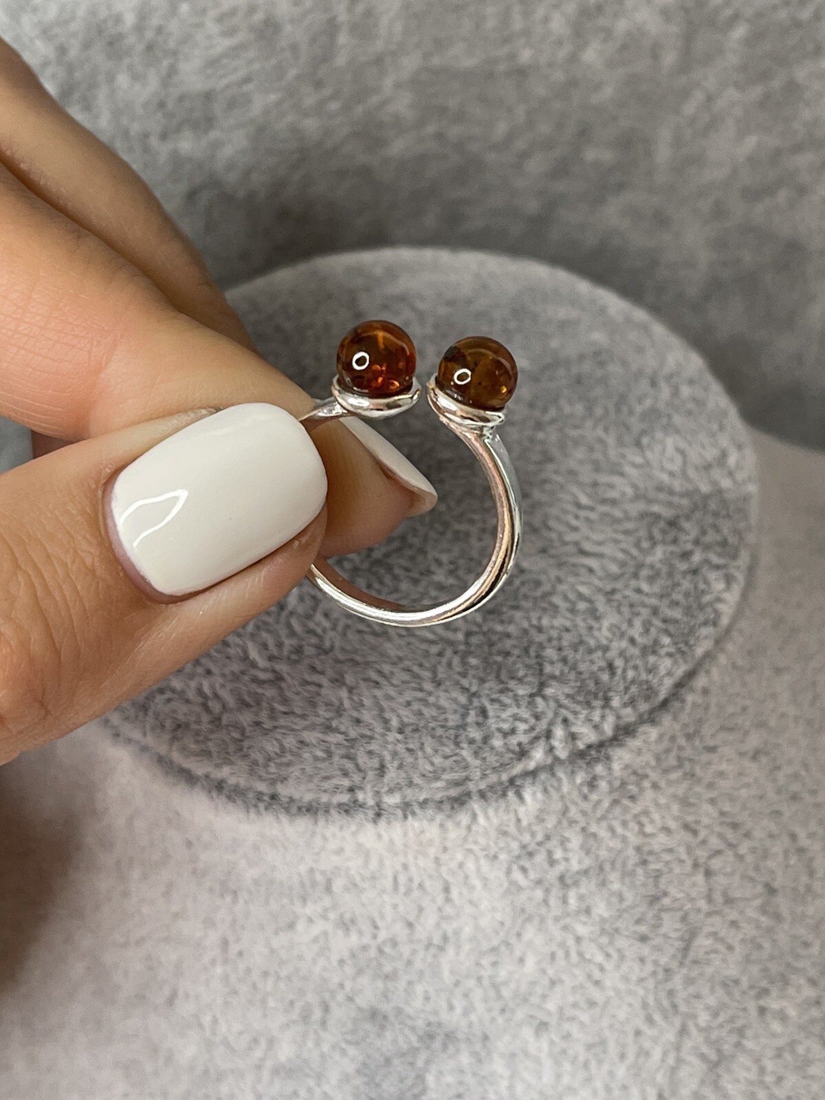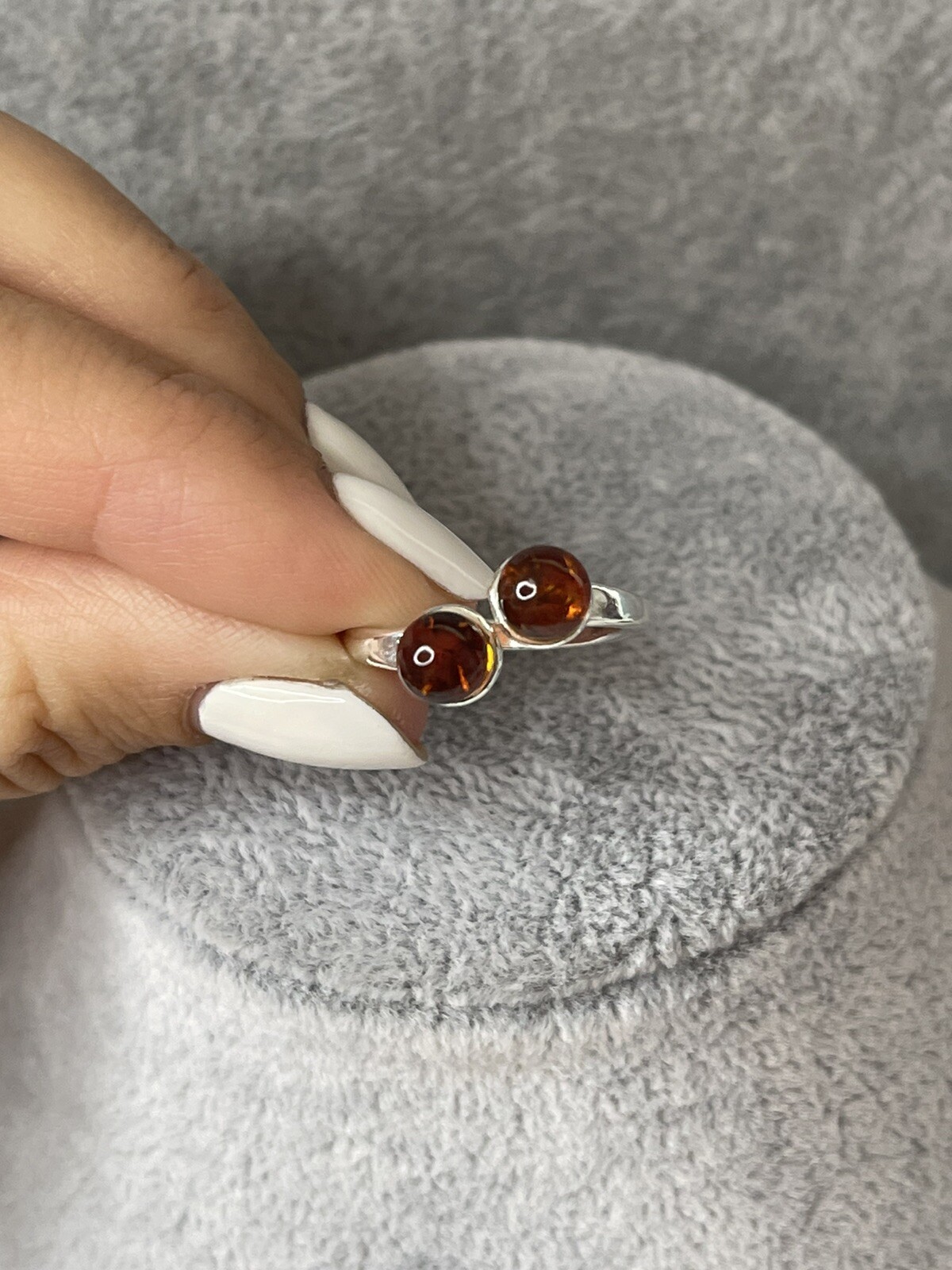как выглядит Natural Amber Stone Ring with Sterling Silver. COGNAC Color Amber Ring 6US фото