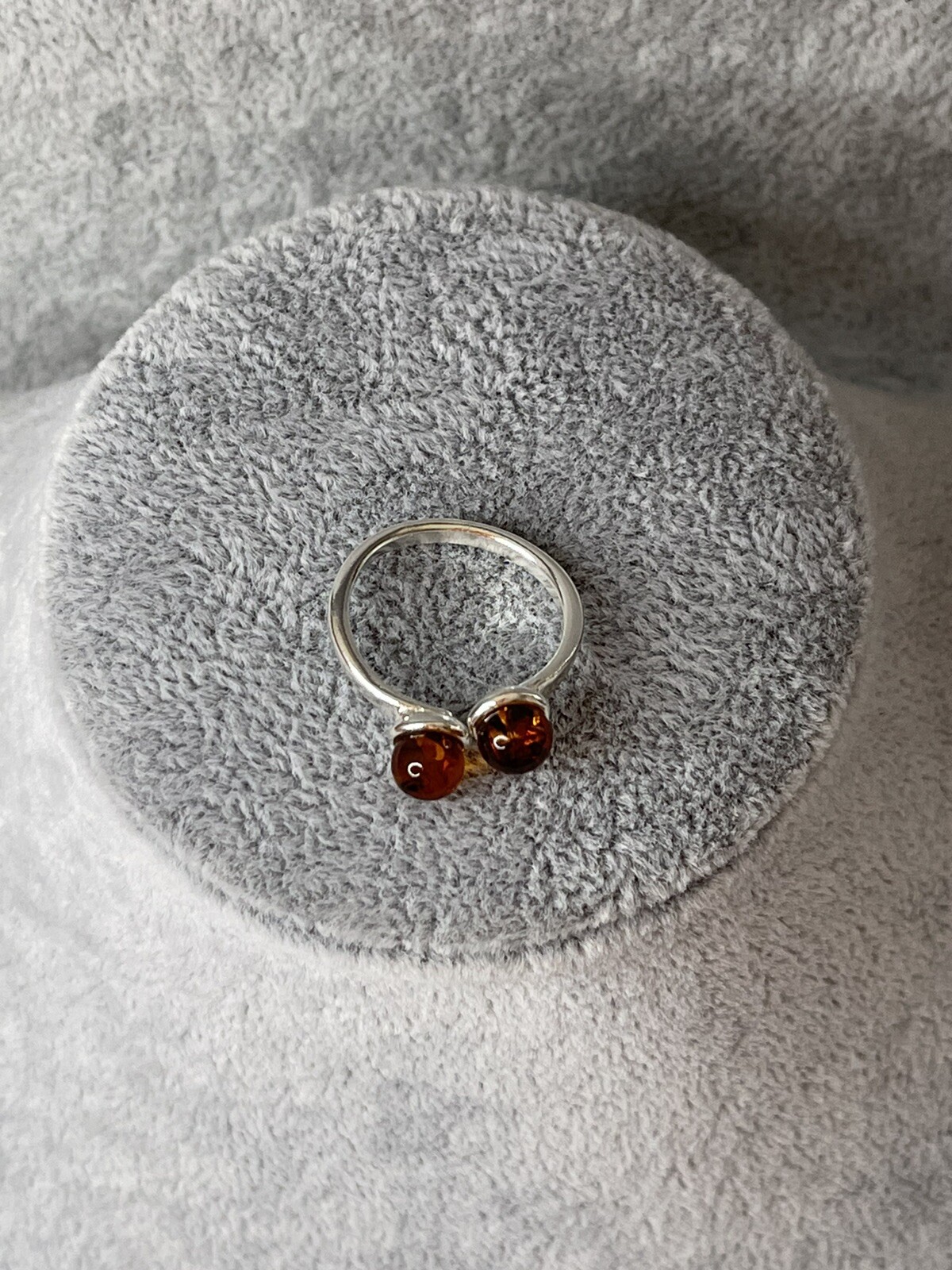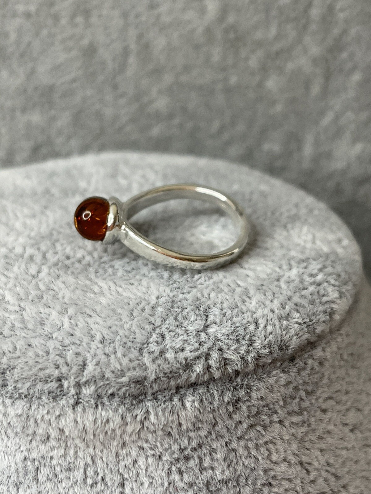 Natural Amber Stone Ring with Sterling Silver. COGNAC Color Amber Ring 6US