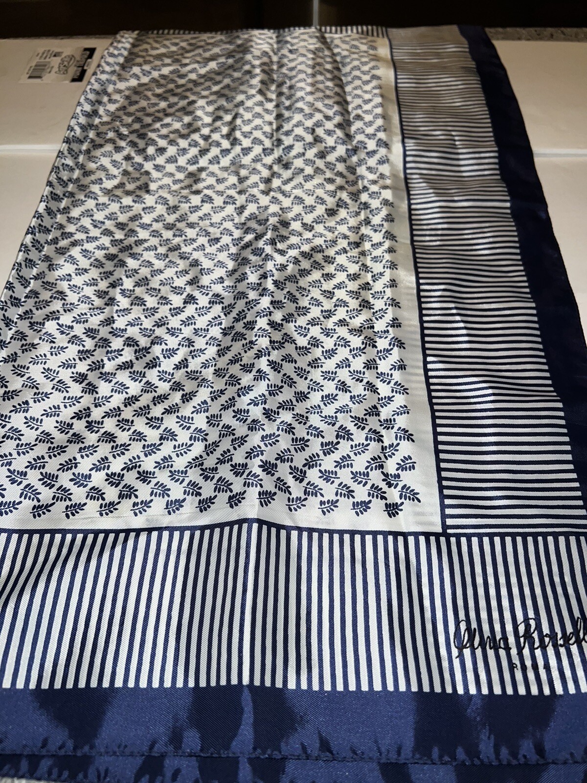 как выглядит Olivia Rosselli Roma Ladies Blue and White Scarf - 26 inches Square Signed фото