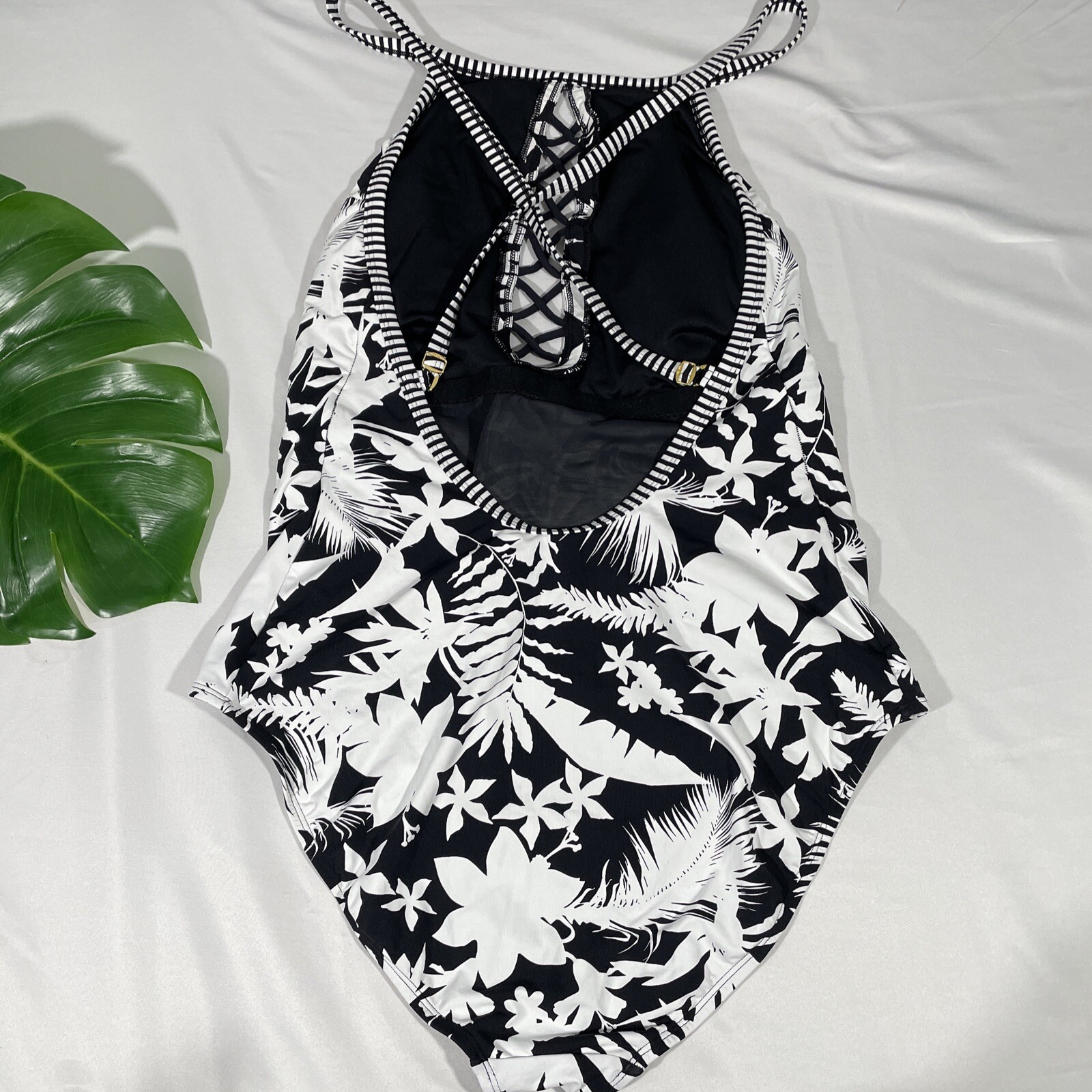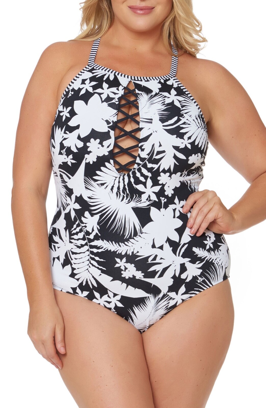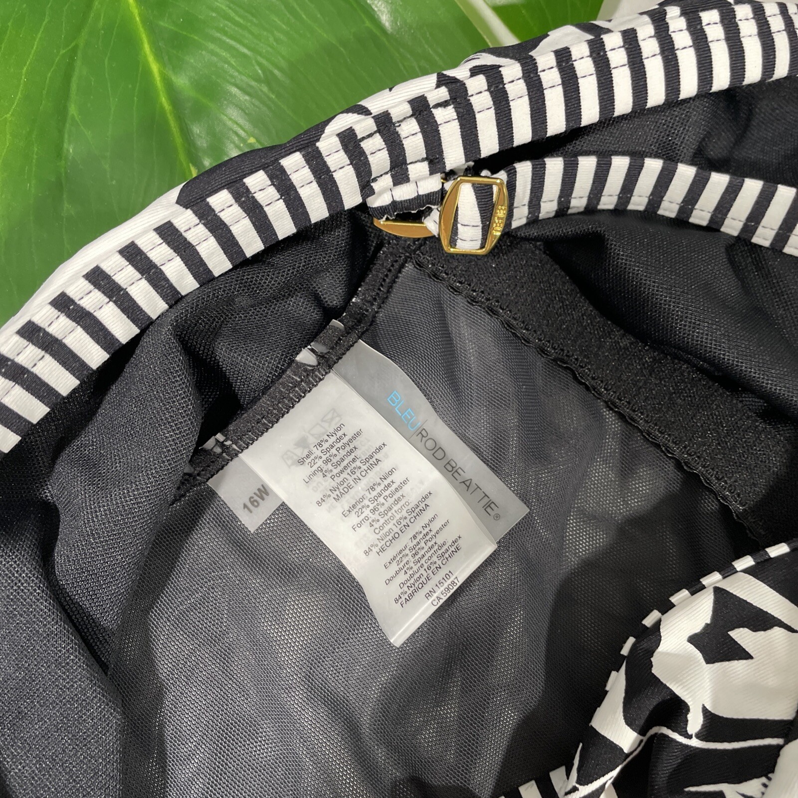 NEW Bleu Rod Beattie 16W Tropical Oasis One Piece Swimsuit Black White T872