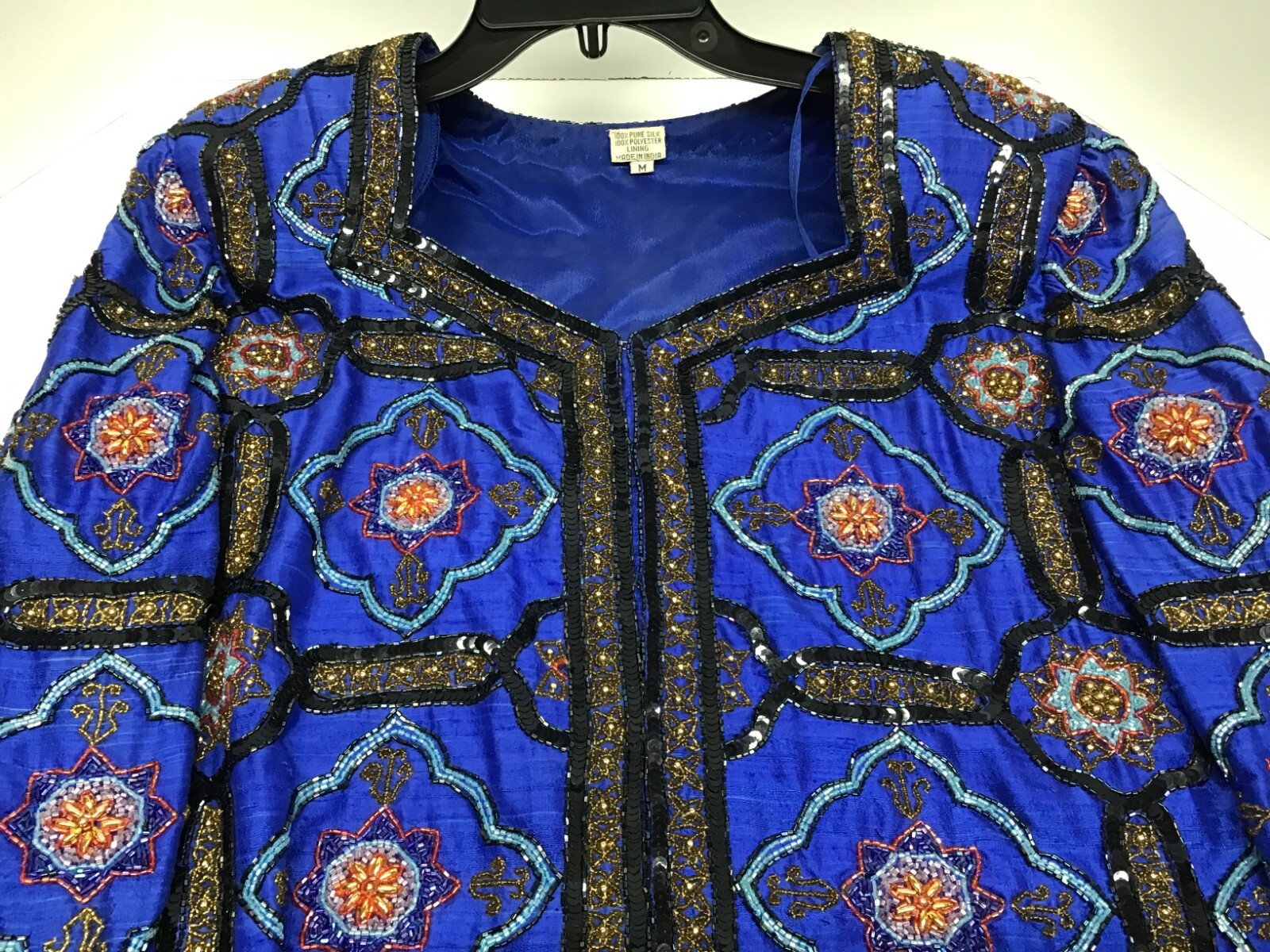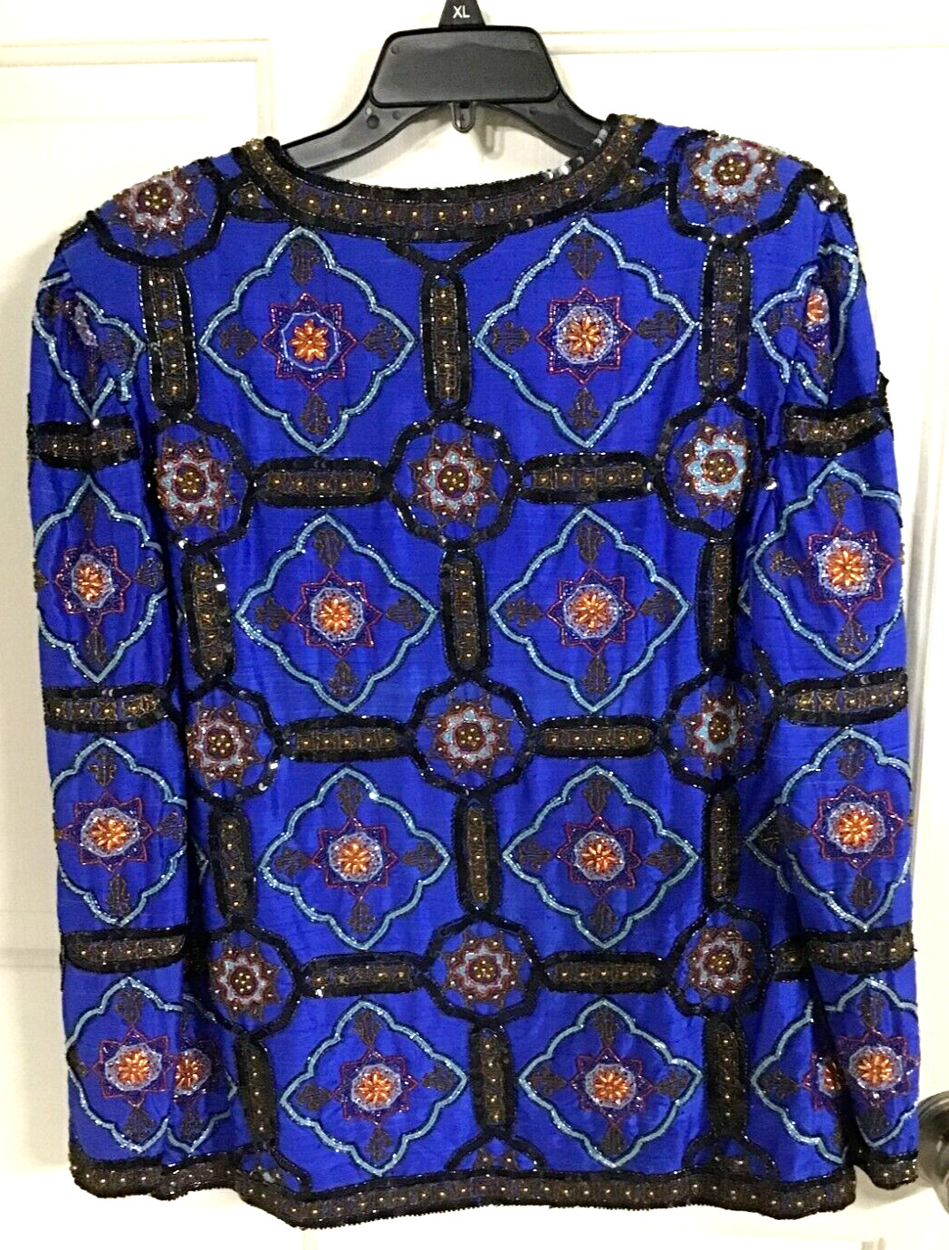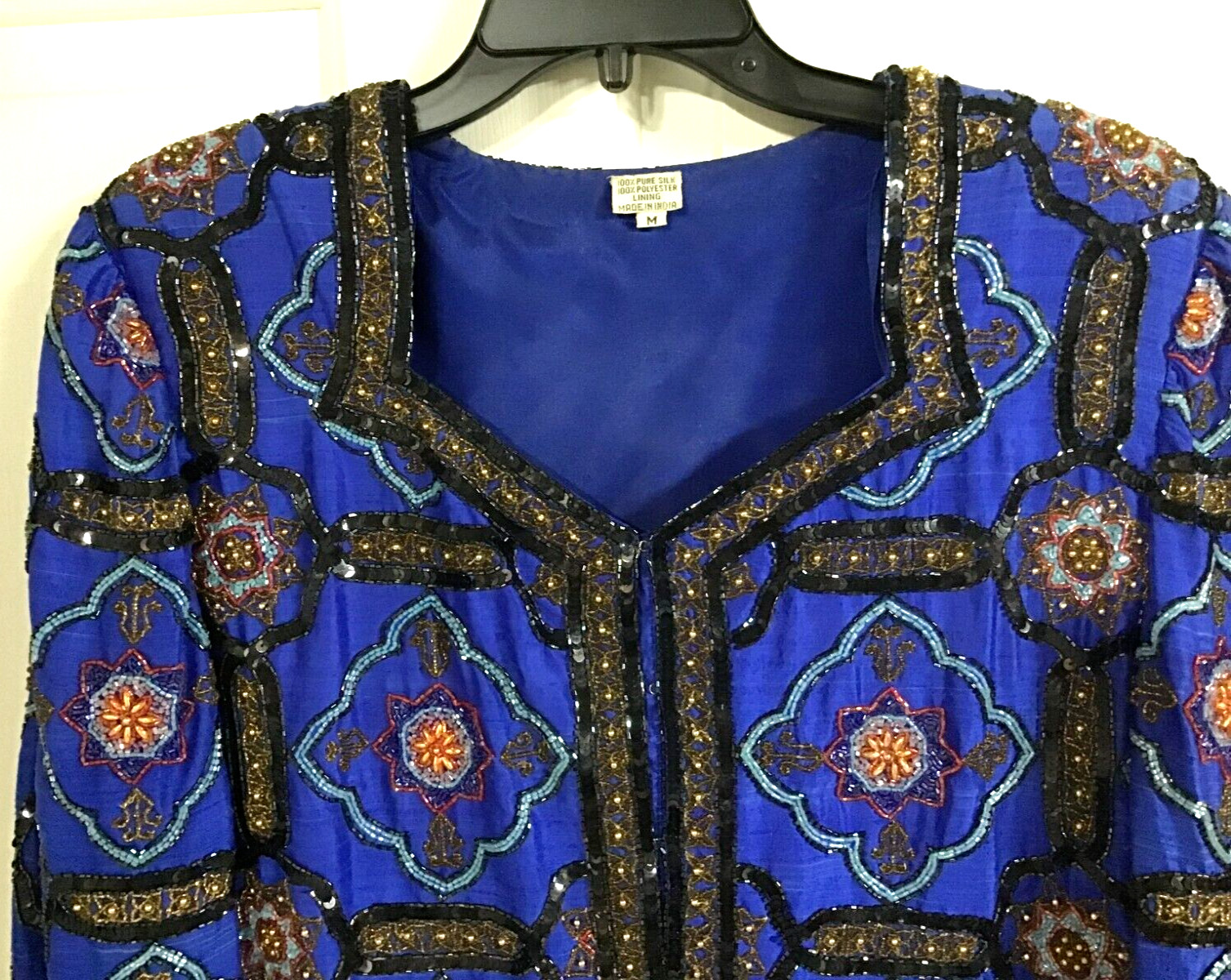 как выглядит Pure Silk All Over Beaded Sequin Vintage Lined Medium Jacket Made in India фото