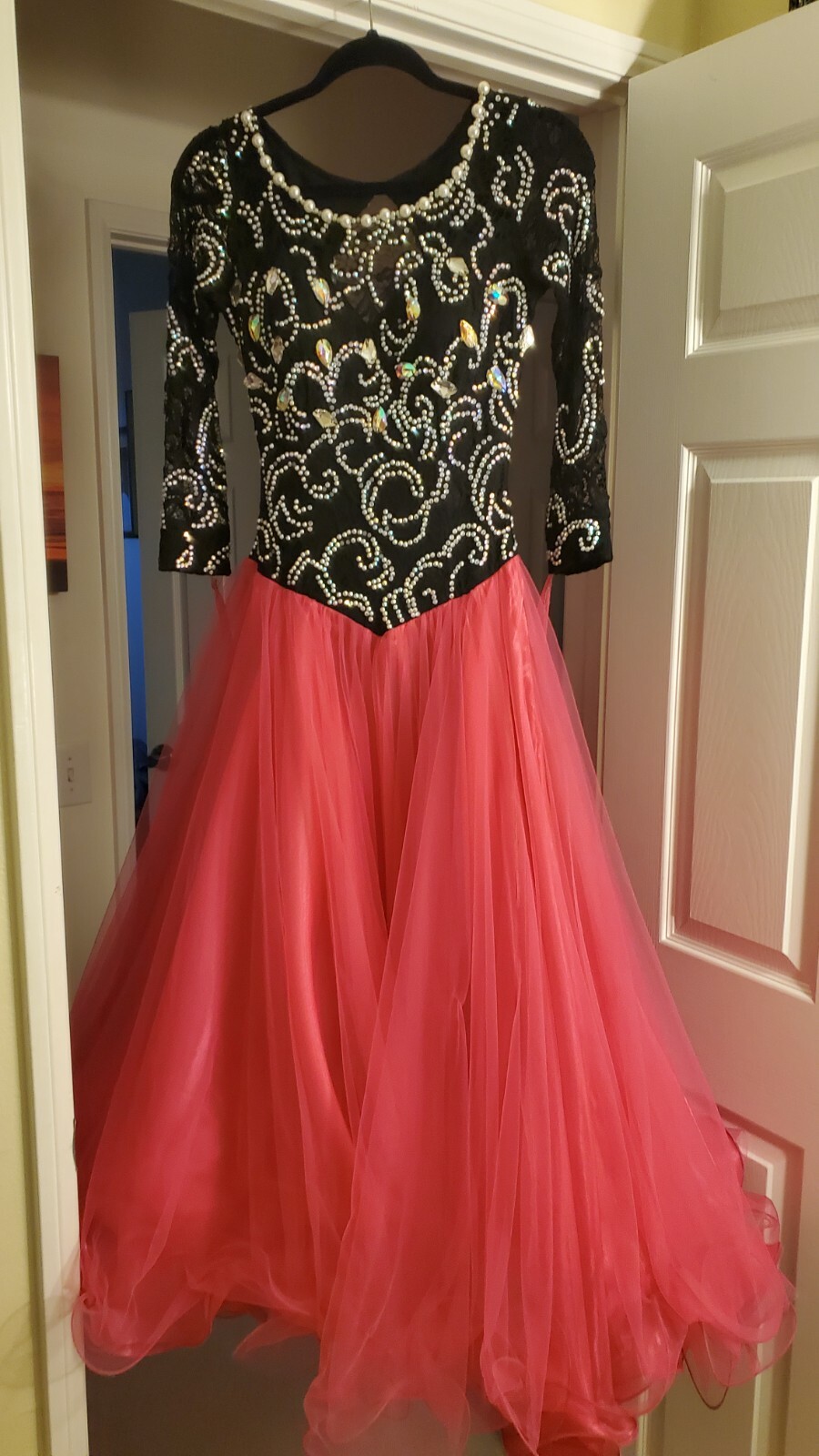 как выглядит BALLROOM LATIN RHYTHM COMPETITION DANCE DRESS PEARLS/CRYSTALS WINGS NECLACE S/M фото