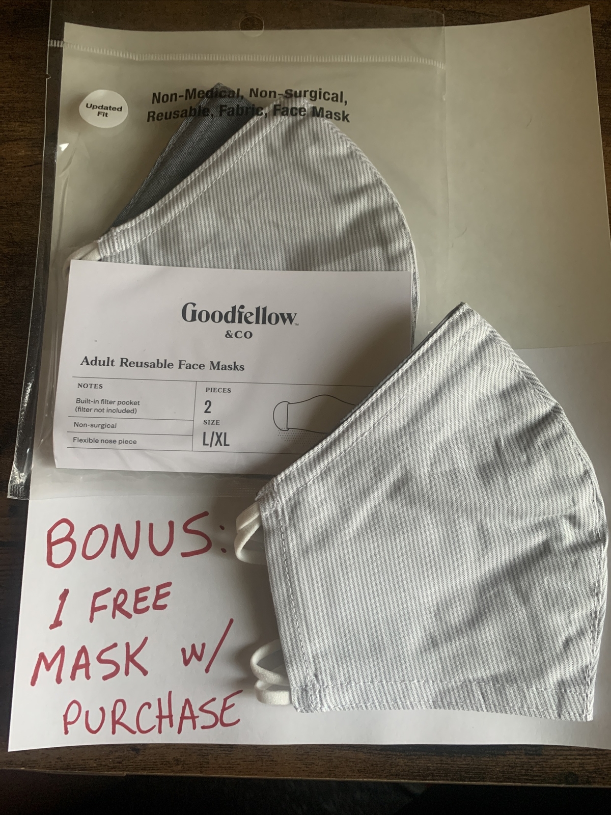 как выглядит Goodfellow 3 pc Fabric Face Masks Size L/XL - Gray Striped Navy Reversible FREE фото