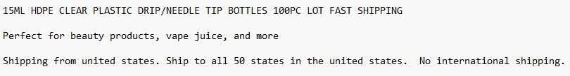 15ML HDPE CLEAR PLASTIC DRIP/NEEDLE TIP BOTTLES CHILD SAFE CAPS 100PC LOT