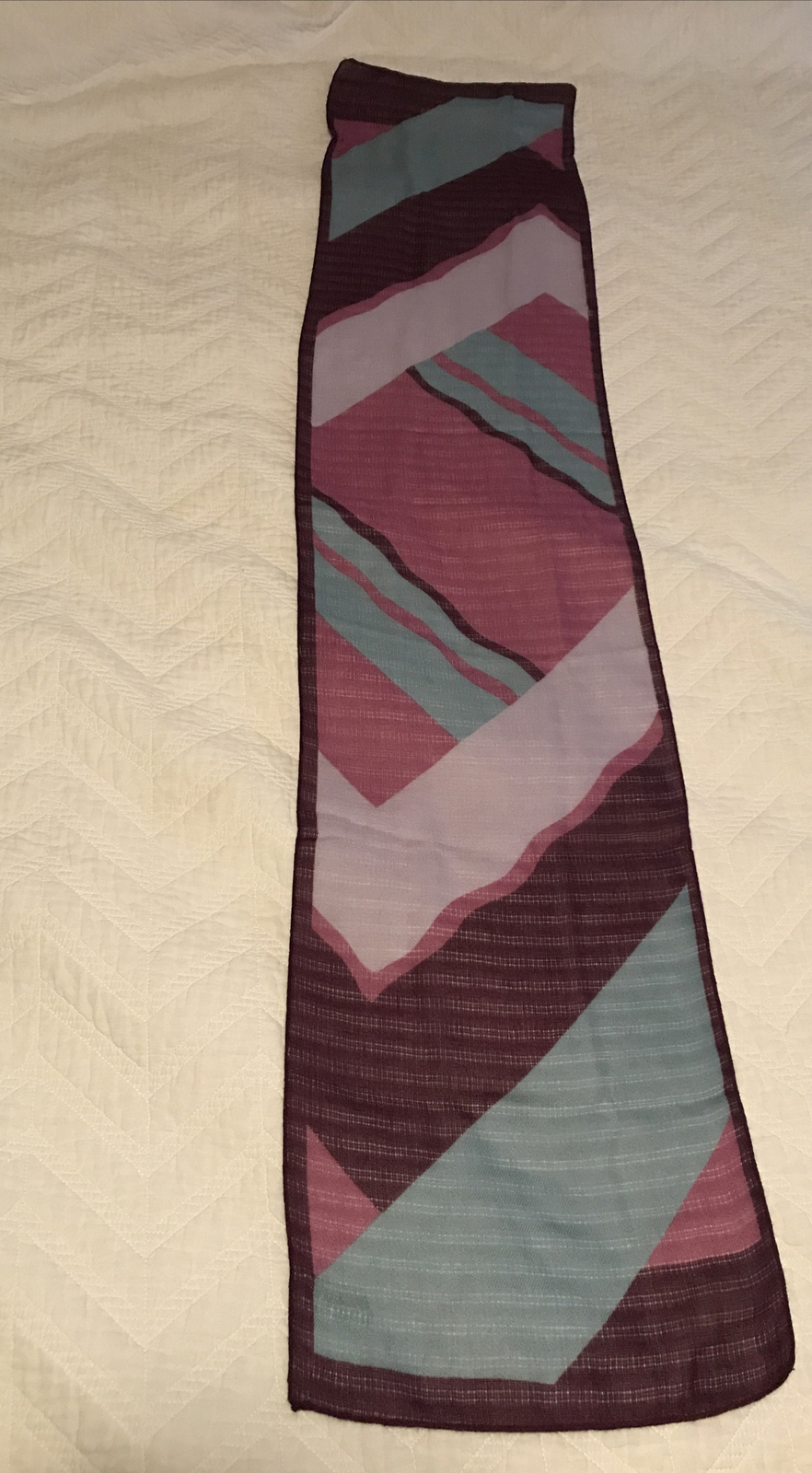 Vtg Long Rectangular Sheer Scarf Hair Wrap Geometric Blue Purples 55L x 11 1/4W