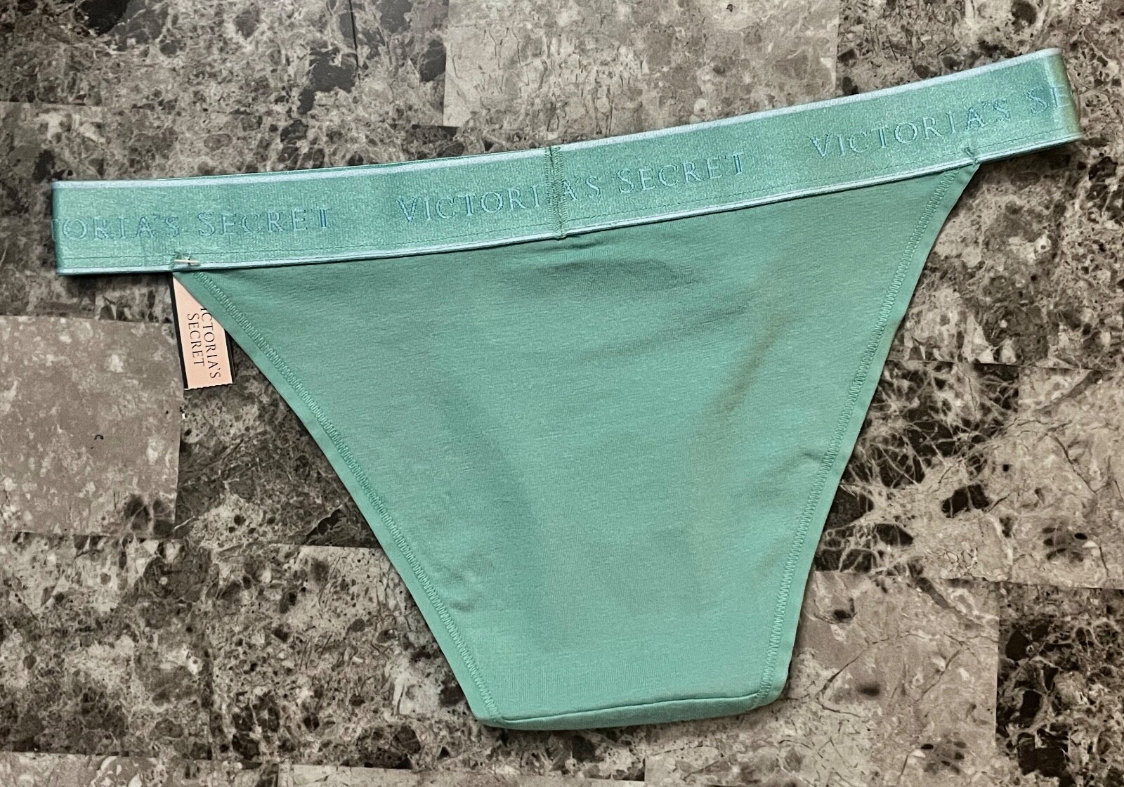 как выглядит NWT VICTORIAS SECRET GREEN SMOOTH THICK LOGO WAISTBAND CHEEKY TANGA PANTIES фото