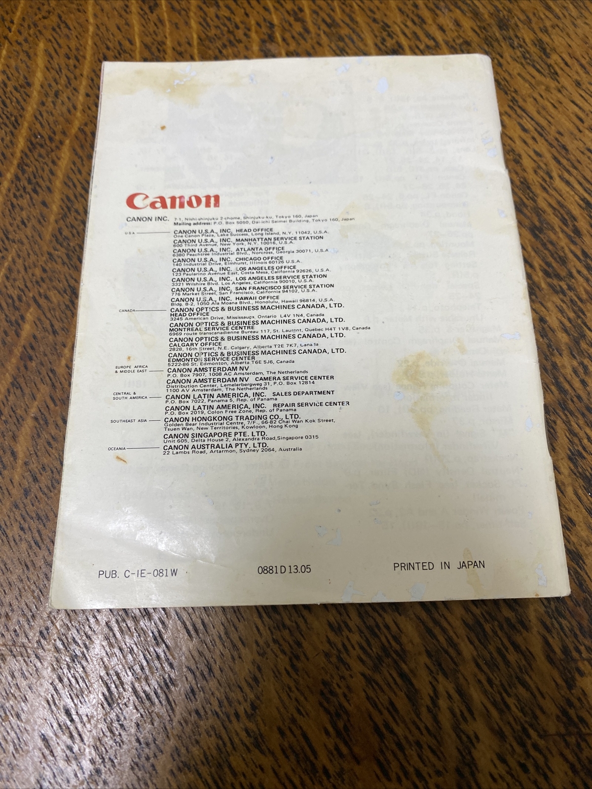 Canon Camera AE-1 camera Owner's Manual Guide EN PART 2 ST-1