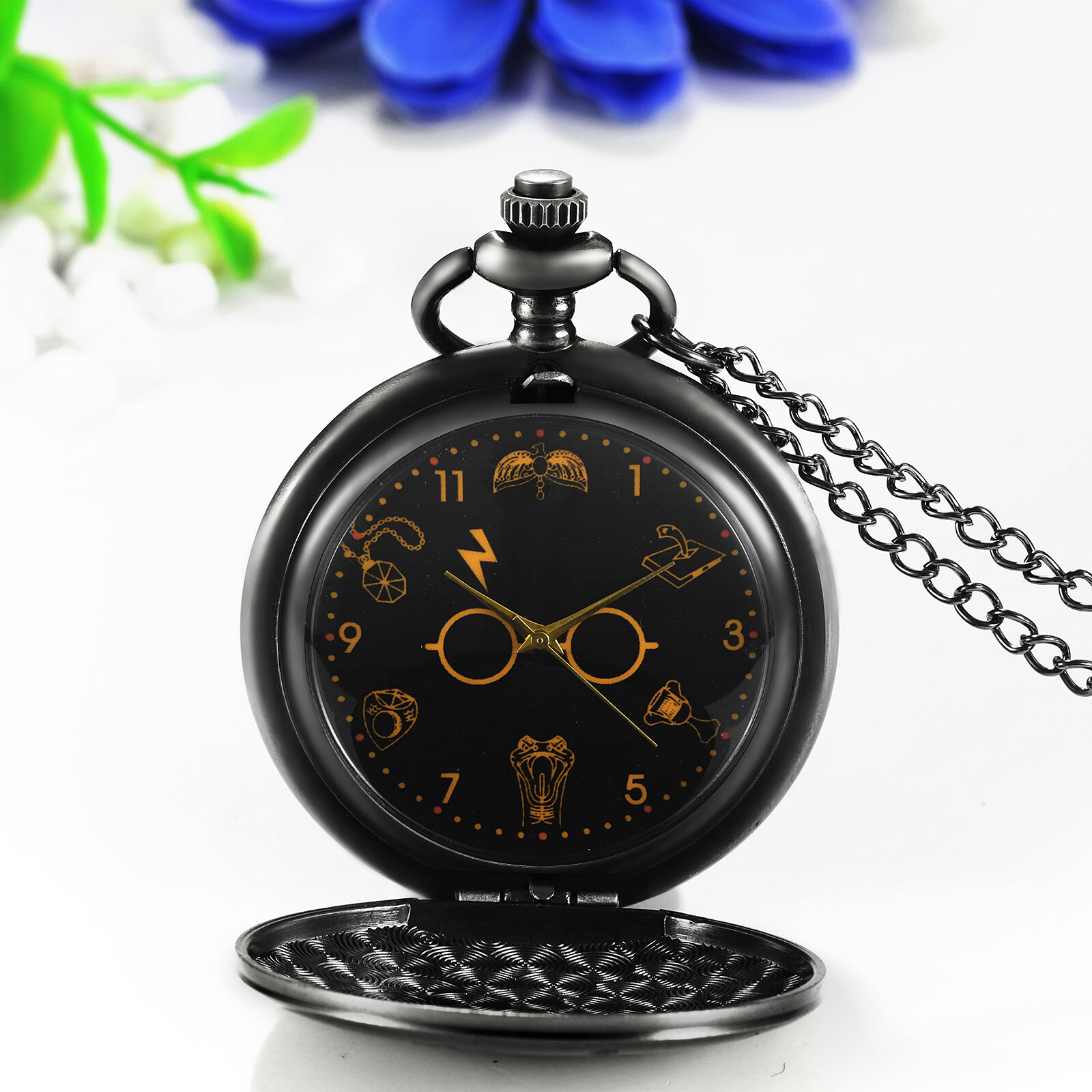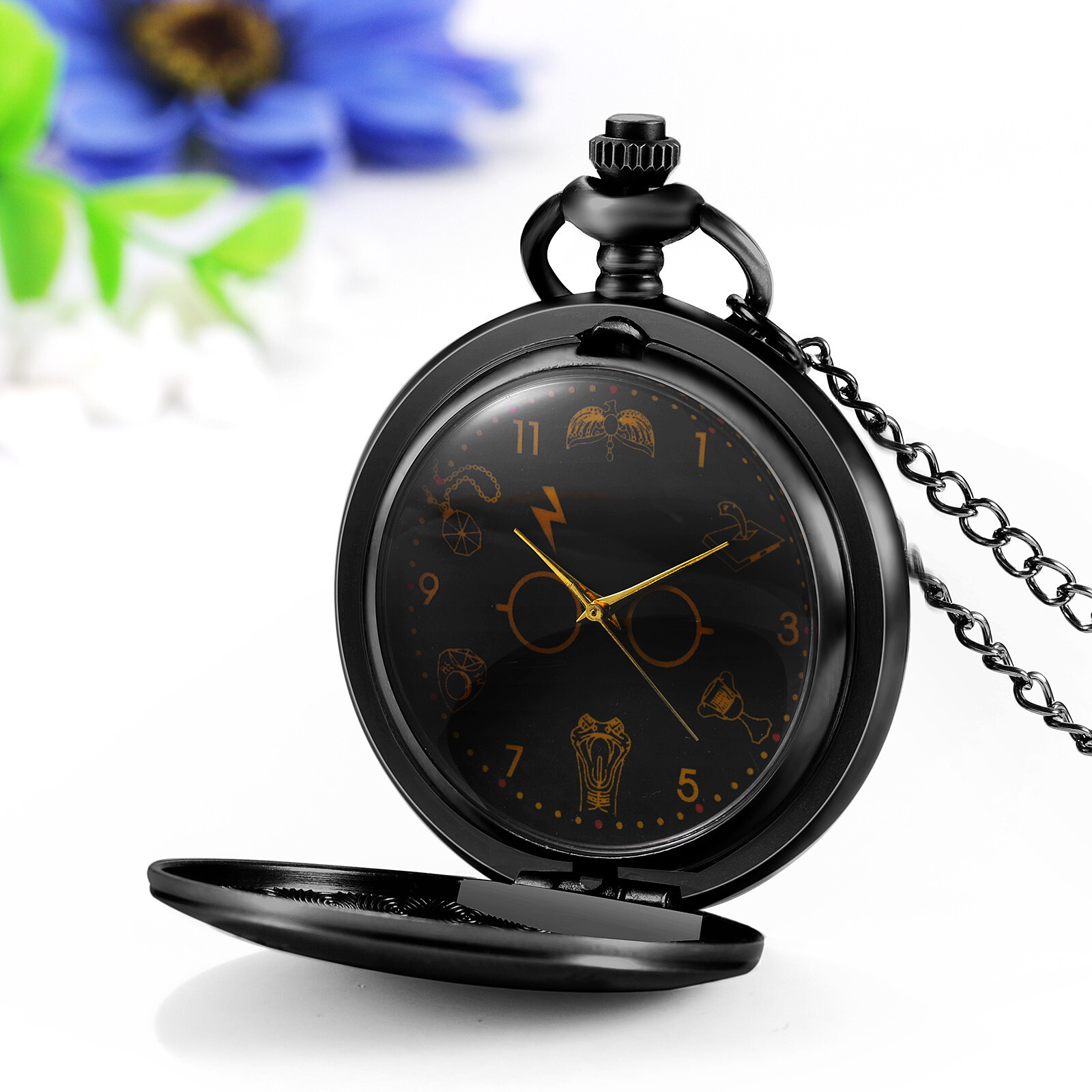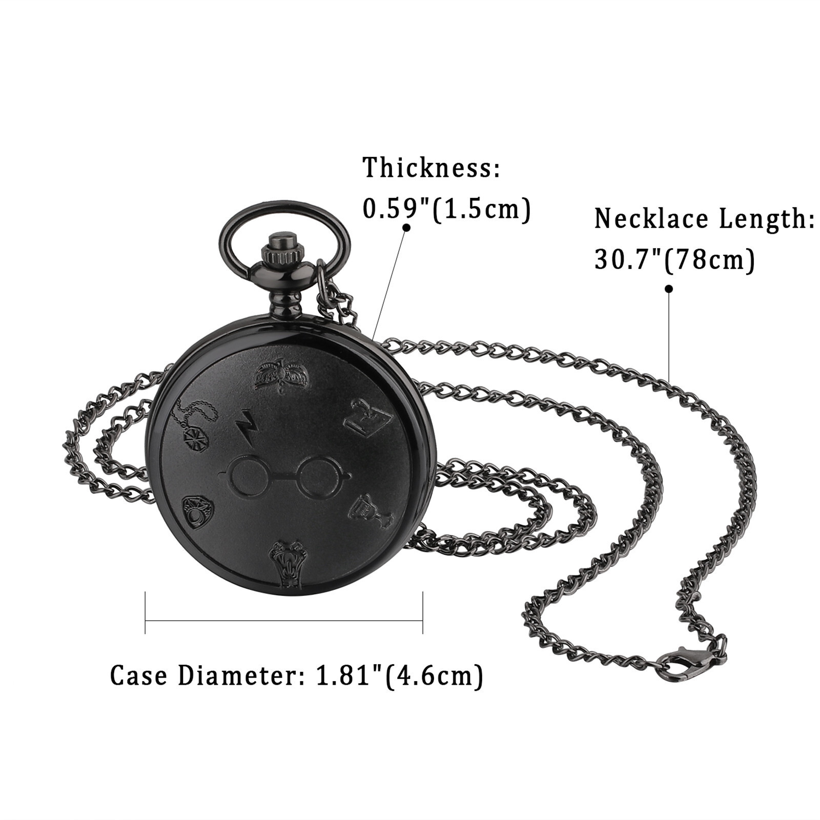 Creative Steampunk Black Dial Quartz Pocket Watch Necklace Chain for Men Women