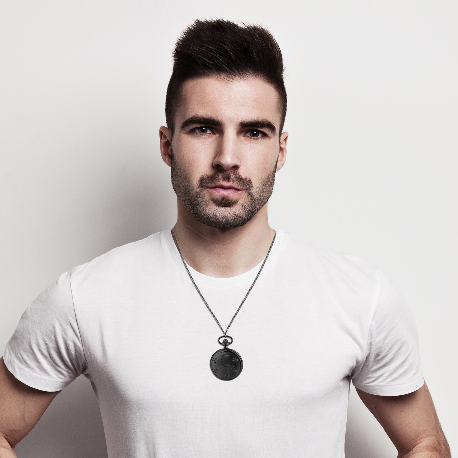 как выглядит Creative Steampunk Black Dial Quartz Pocket Watch Necklace Chain for Men Women фото