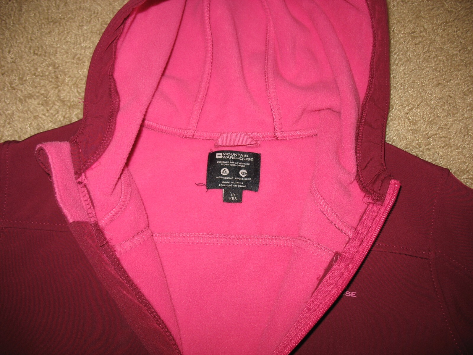 Girls' size 13 years Mountain Warehouse Fleece Lined Softshell Jacket Burgandy