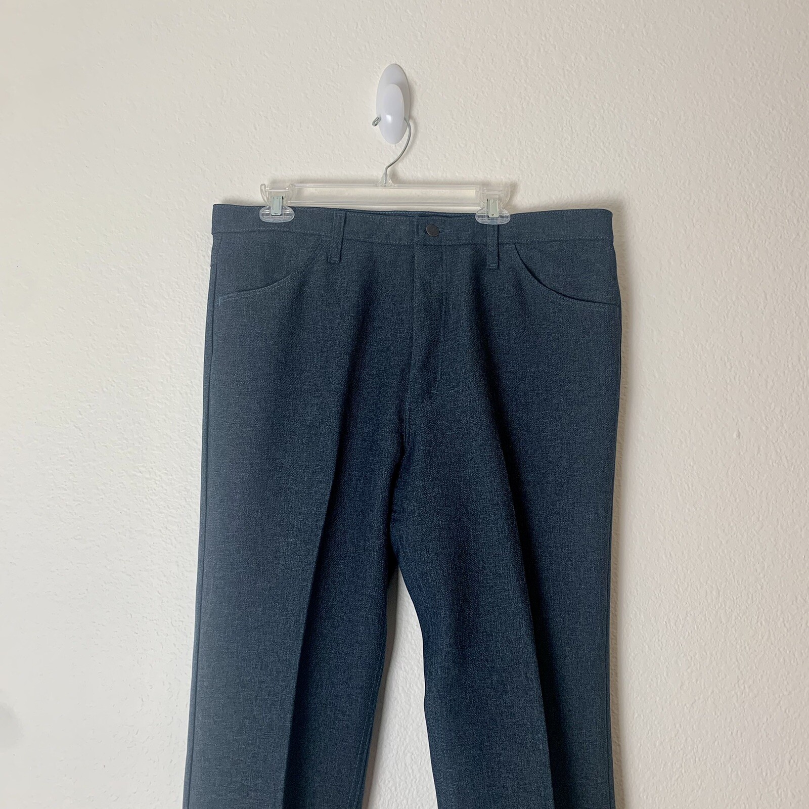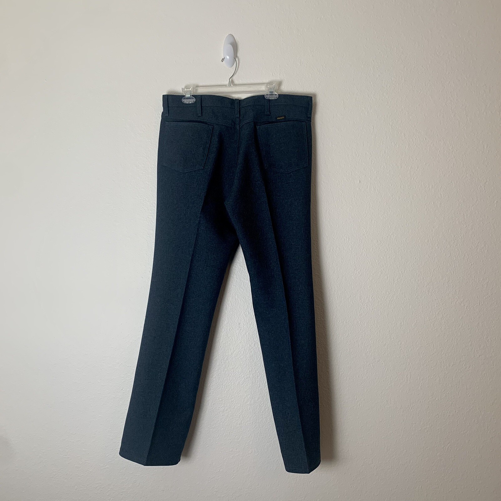 Vintage WRANGLER Mens Polyester Pants Blue Gray Straight Rockabilly 38x32