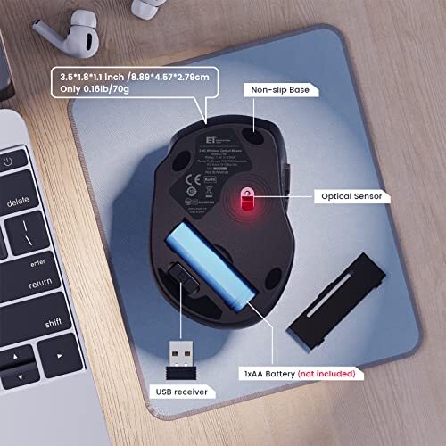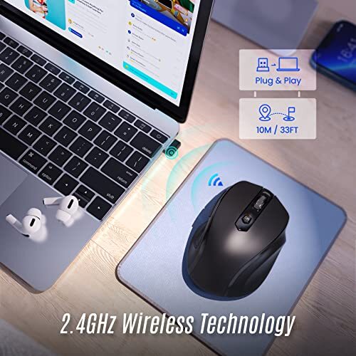 Tmaine Wireless Mouse for Laptop 24G Mobile Computer Mouse with USB Receiver ...
