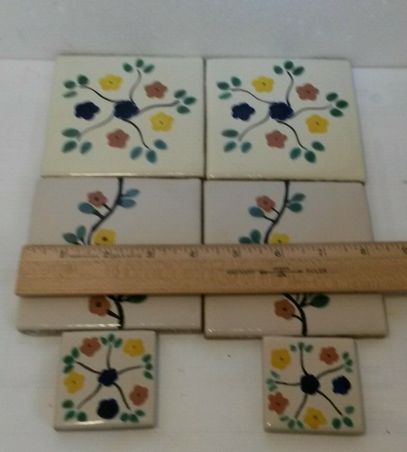 Handmade Red Clay Ceramic Tiles Cobalt Blue and Flowers