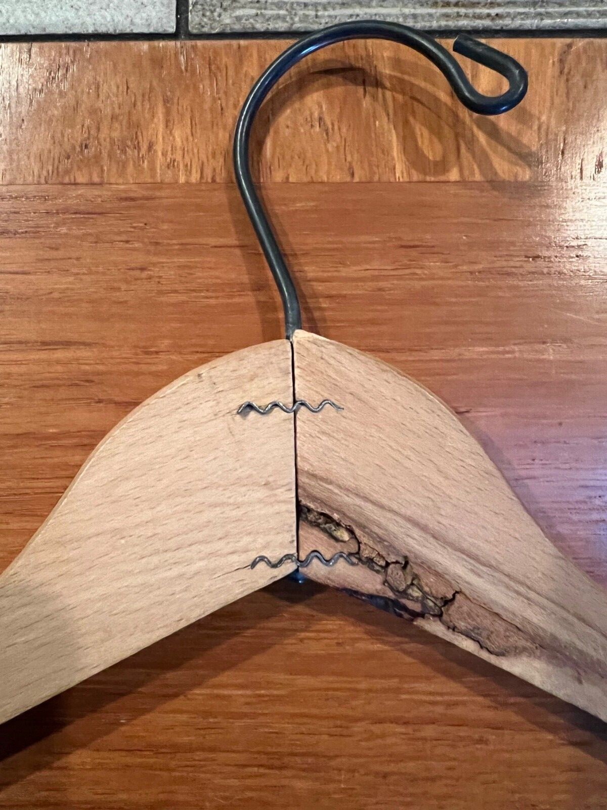 We've all got hang-ups, they're rarely this cool-looking. 2 Vintage Wood Hangers