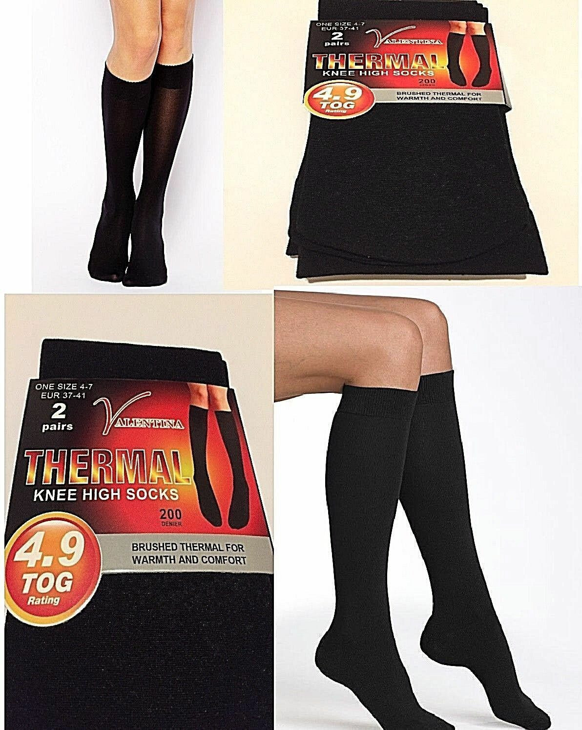 2 pairs Ladies Thermal Socks Insulated Winter Knee High School Socks