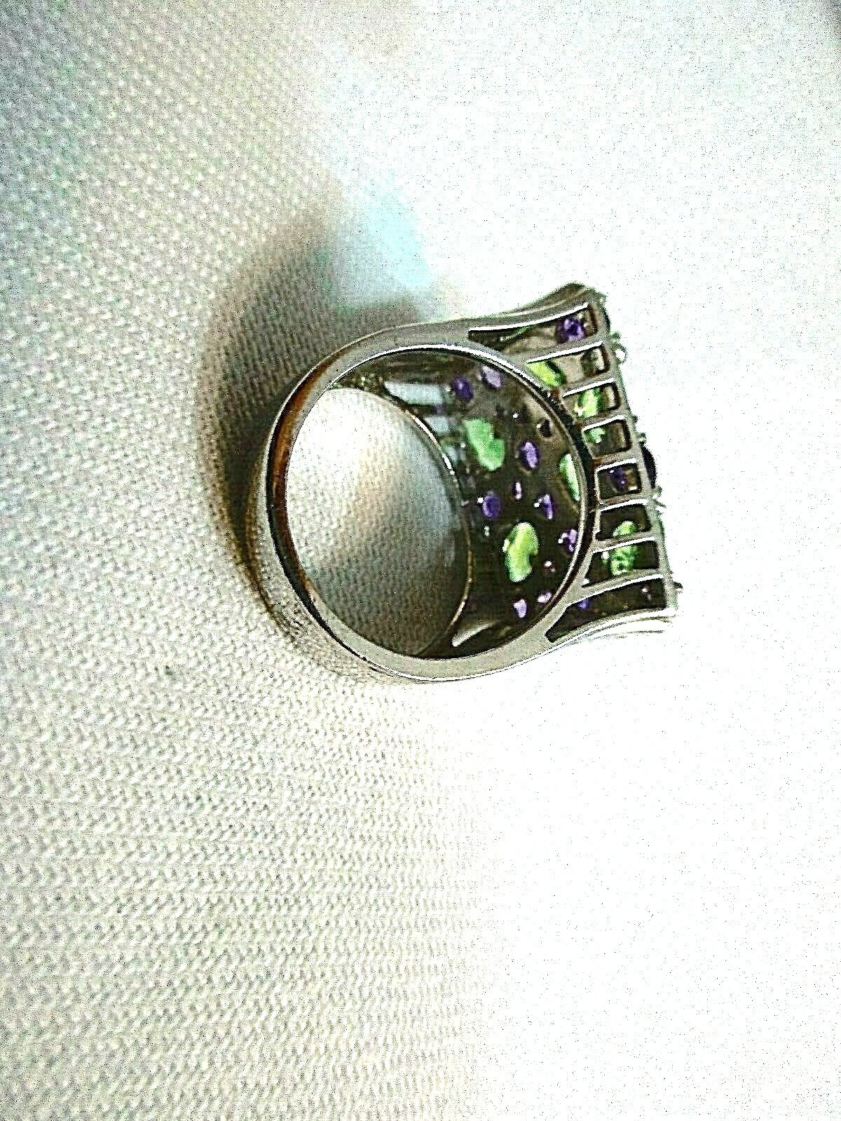 как выглядит STERLING SILVER RING AMETHYST/PERIDOT SZ-6.5 фото