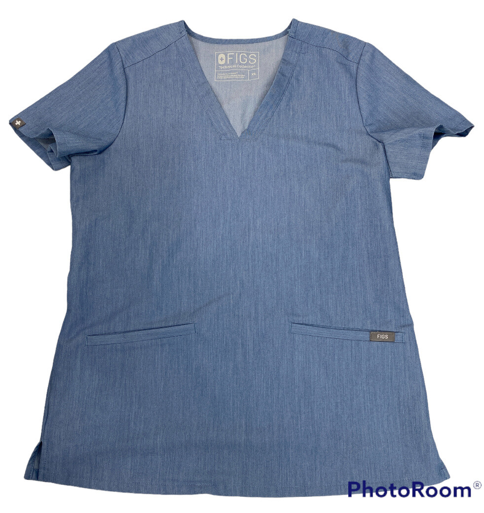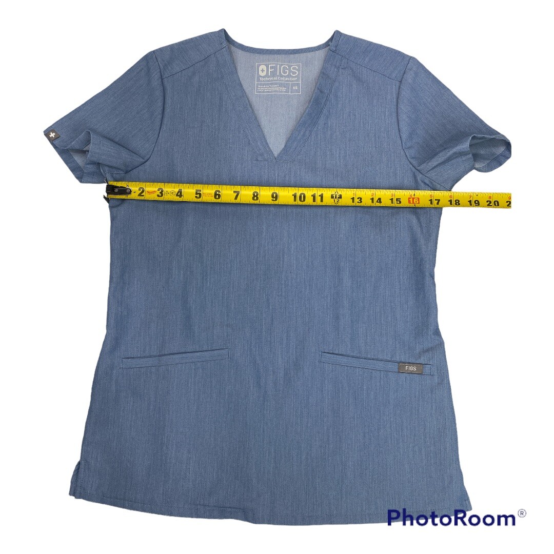 как выглядит Figs Casma Size XS Scrub Top Shirt Blue V Neck Pockets Style FW1100 фото