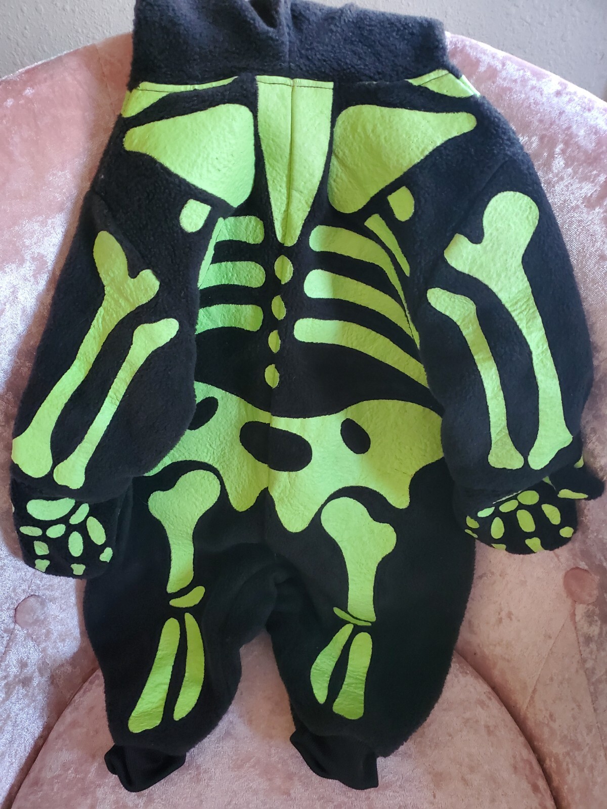 Infant Hooded Fleece Reflective Neon Green / Black Skeleton outfit 3/6 Months