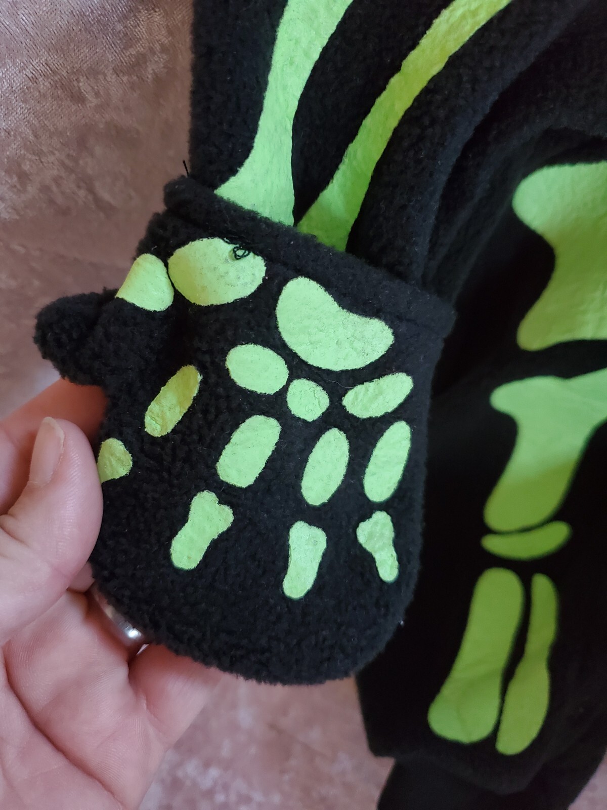 как выглядит Infant Hooded Fleece Reflective Neon Green / Black Skeleton outfit 3/6 Months фото