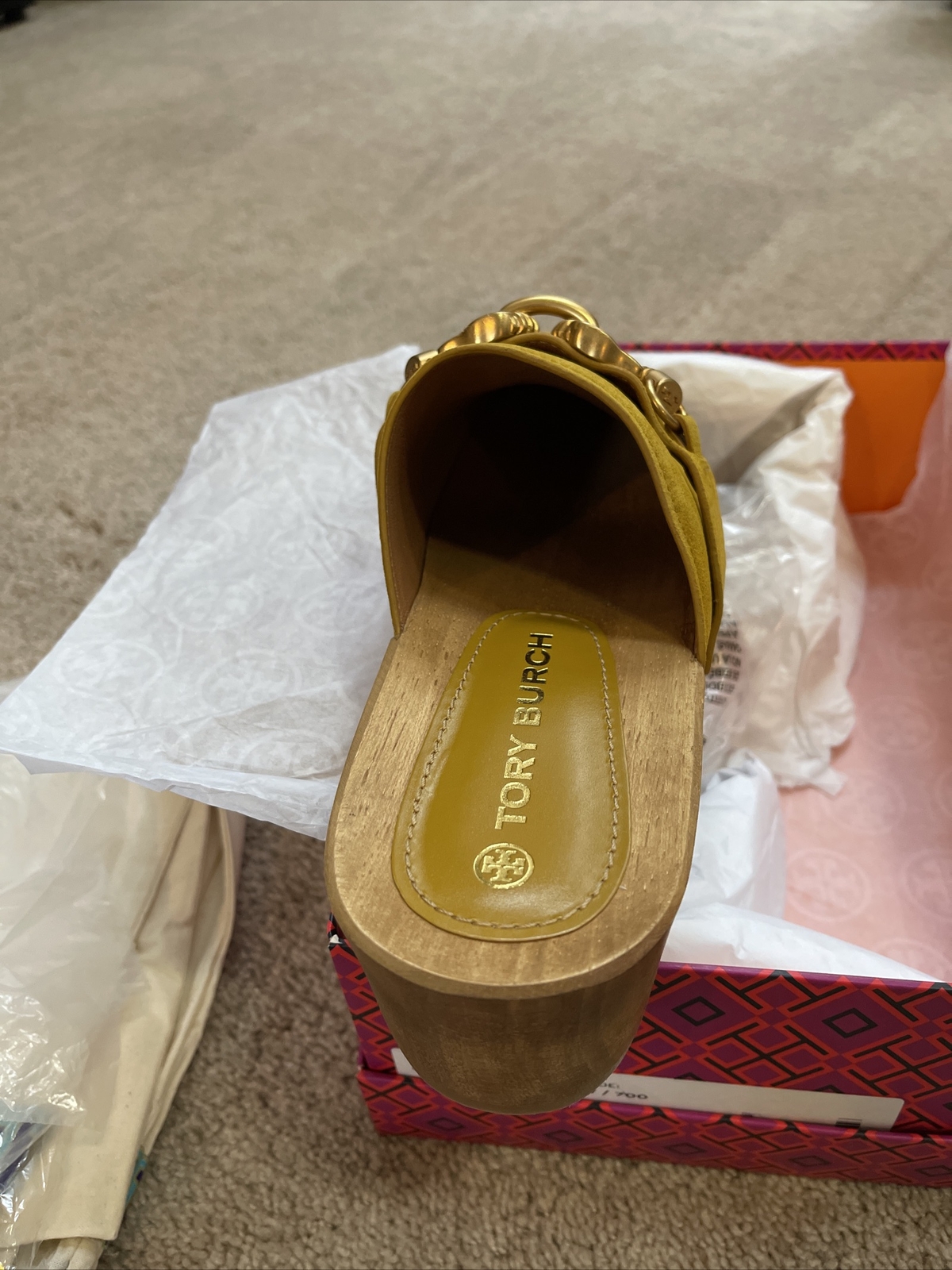 как выглядит NWB TORY BURCH JESSA HORSE BIT CLOGS IN YELLOW SUEDE US SZ 9.5 MSRP 348 фото