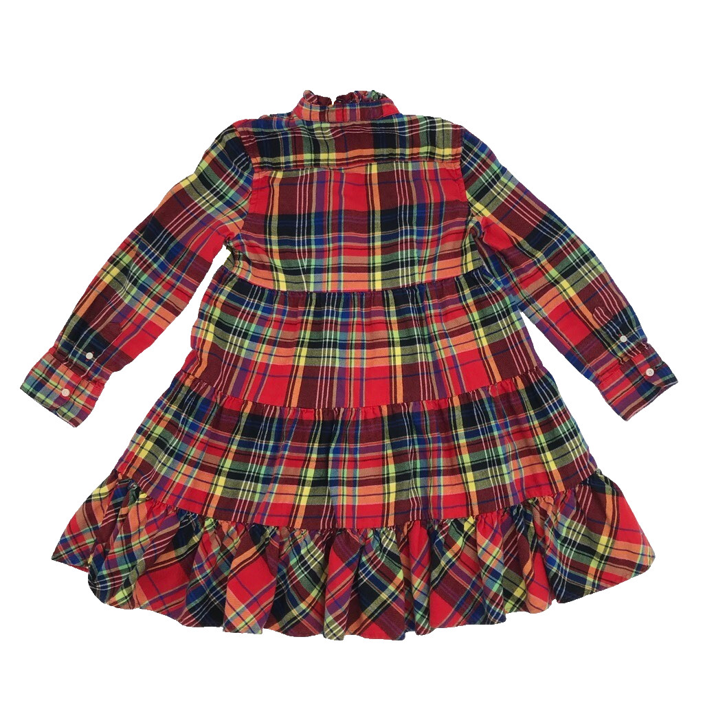 Little Kids 6 Ralph Lauren Girls Shirt Dress Red Plaid Midi Tiered Ruffle Button