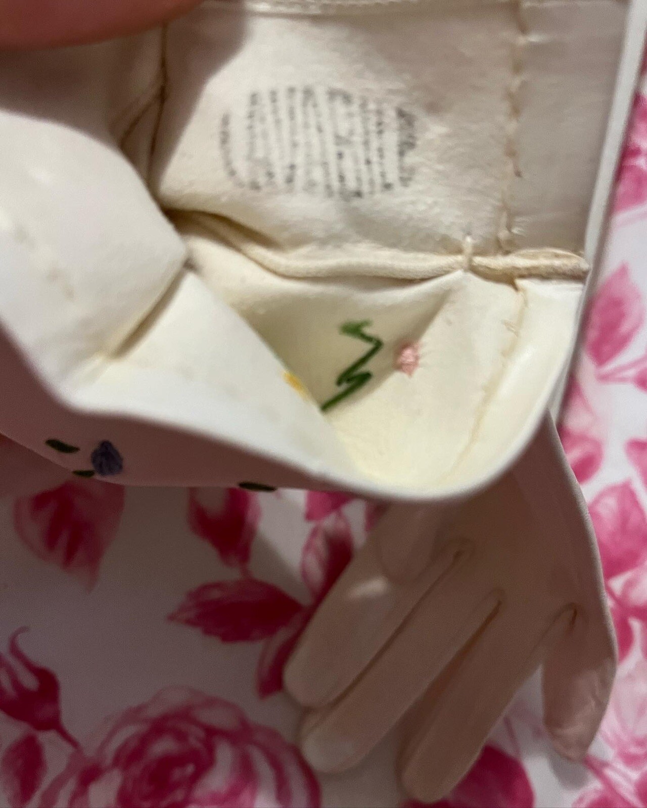 Vintage Girls Lavabile Floral Embroidered Gloves