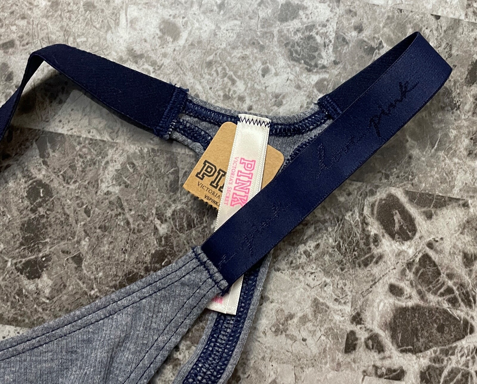 как выглядит NWT VICTORIAS SECRET PINK NAVY BLUE RIBBED LOGO STRAPS HIGH LEG THONG PANTIES фото