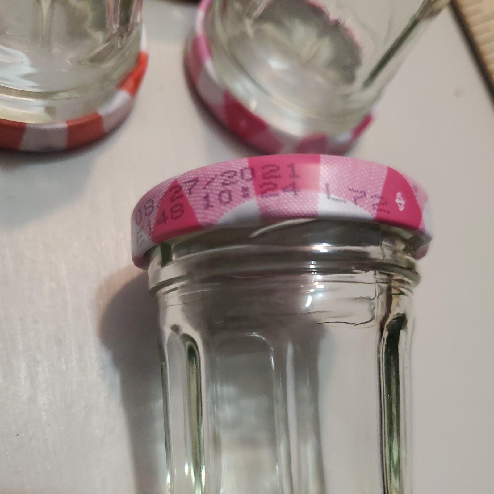 как выглядит Lot of 5 Mini Jars Bonne Maman France 1 Oz Empty Glass Crafts Storage Pink lids. фото