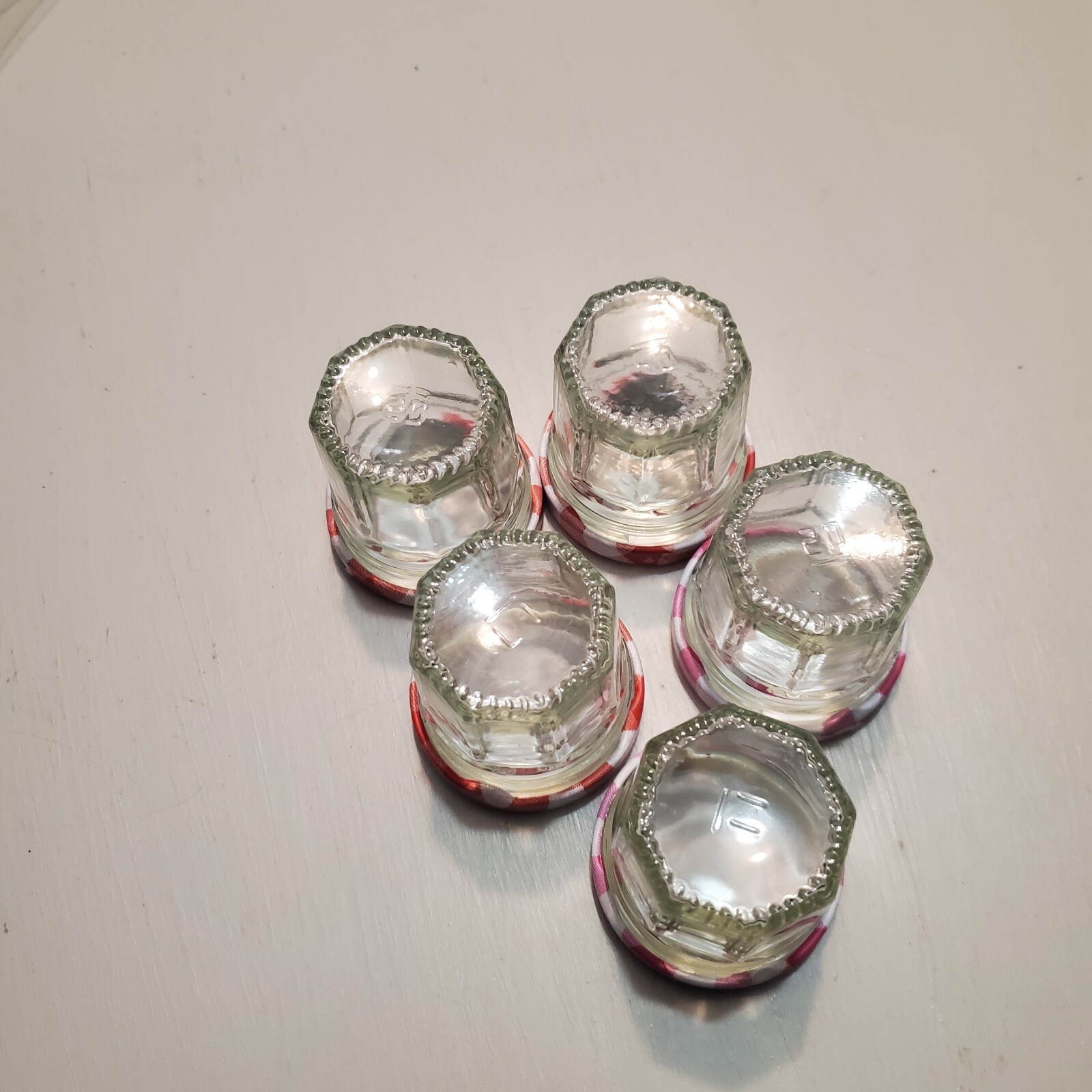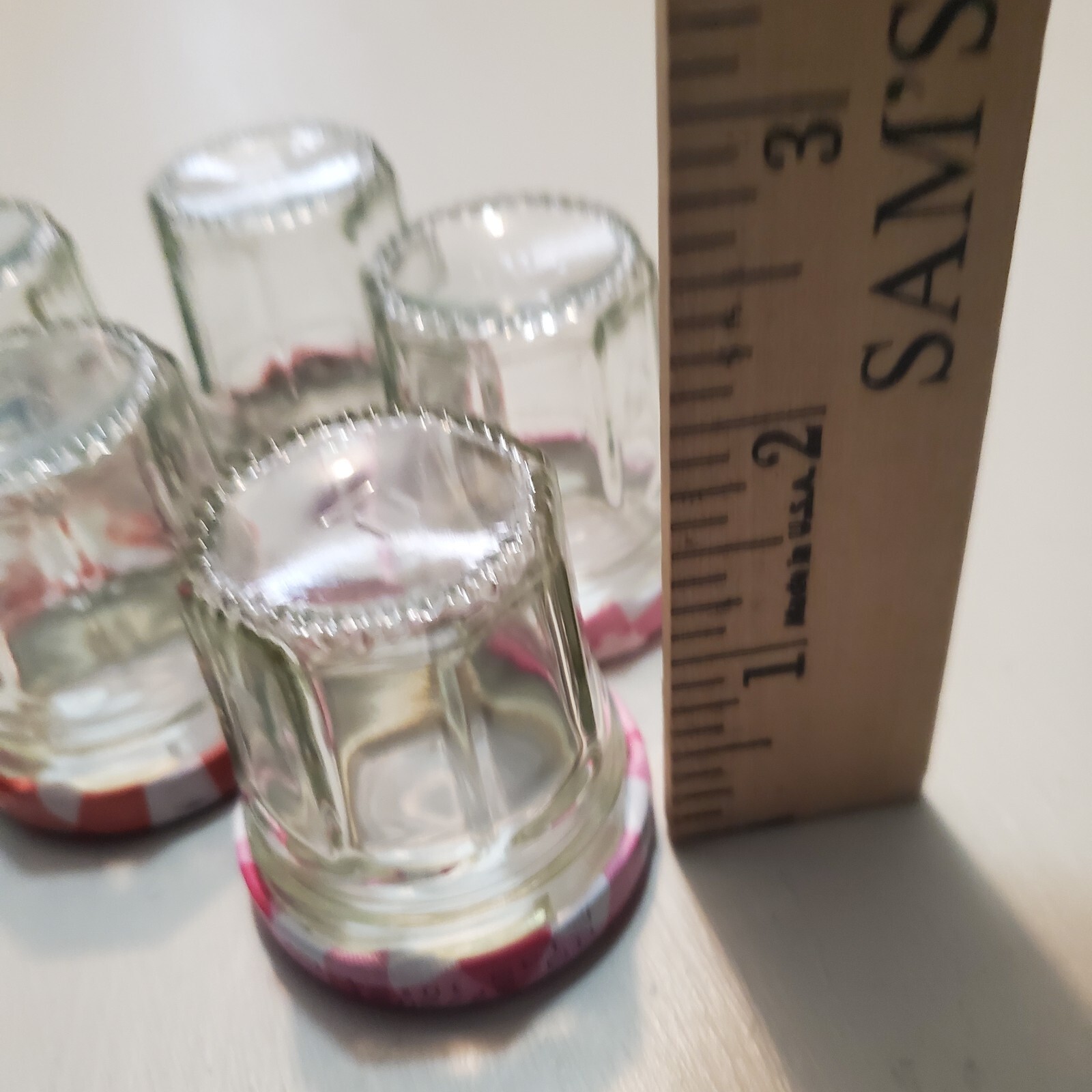 Lot of 5 Mini Jars Bonne Maman France 1 Oz Empty Glass Crafts Storage Pink lids.