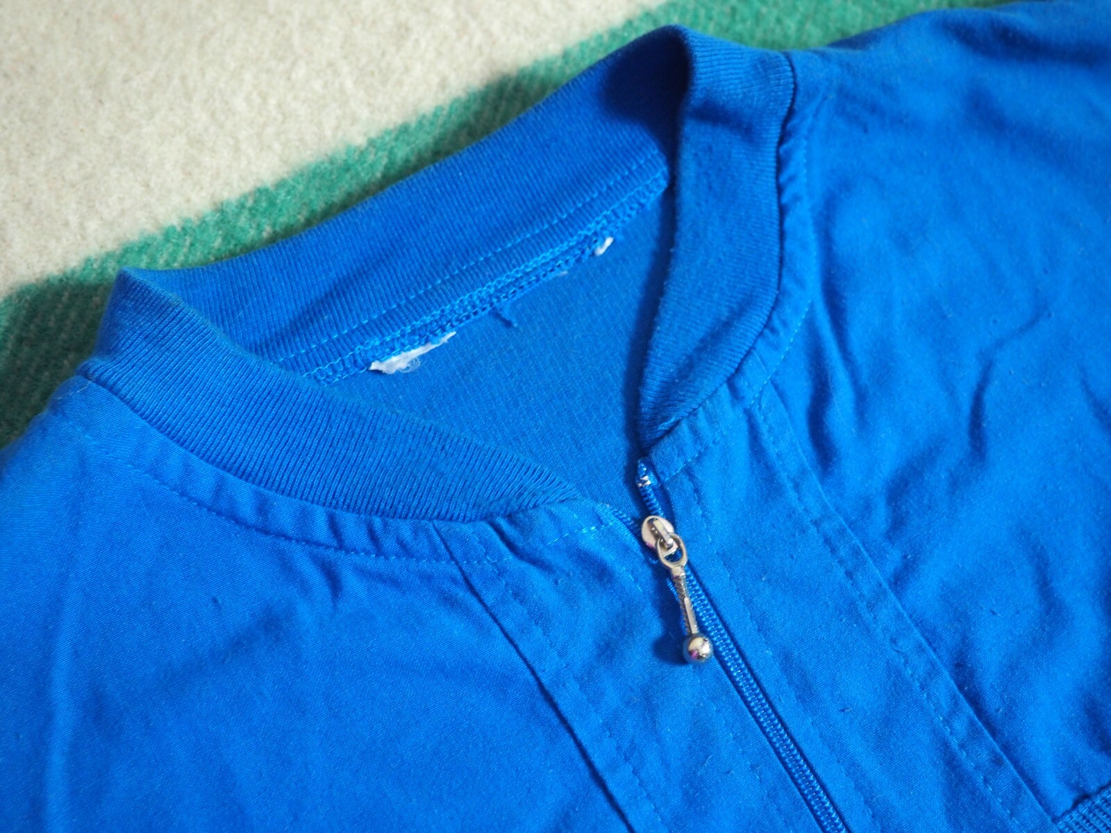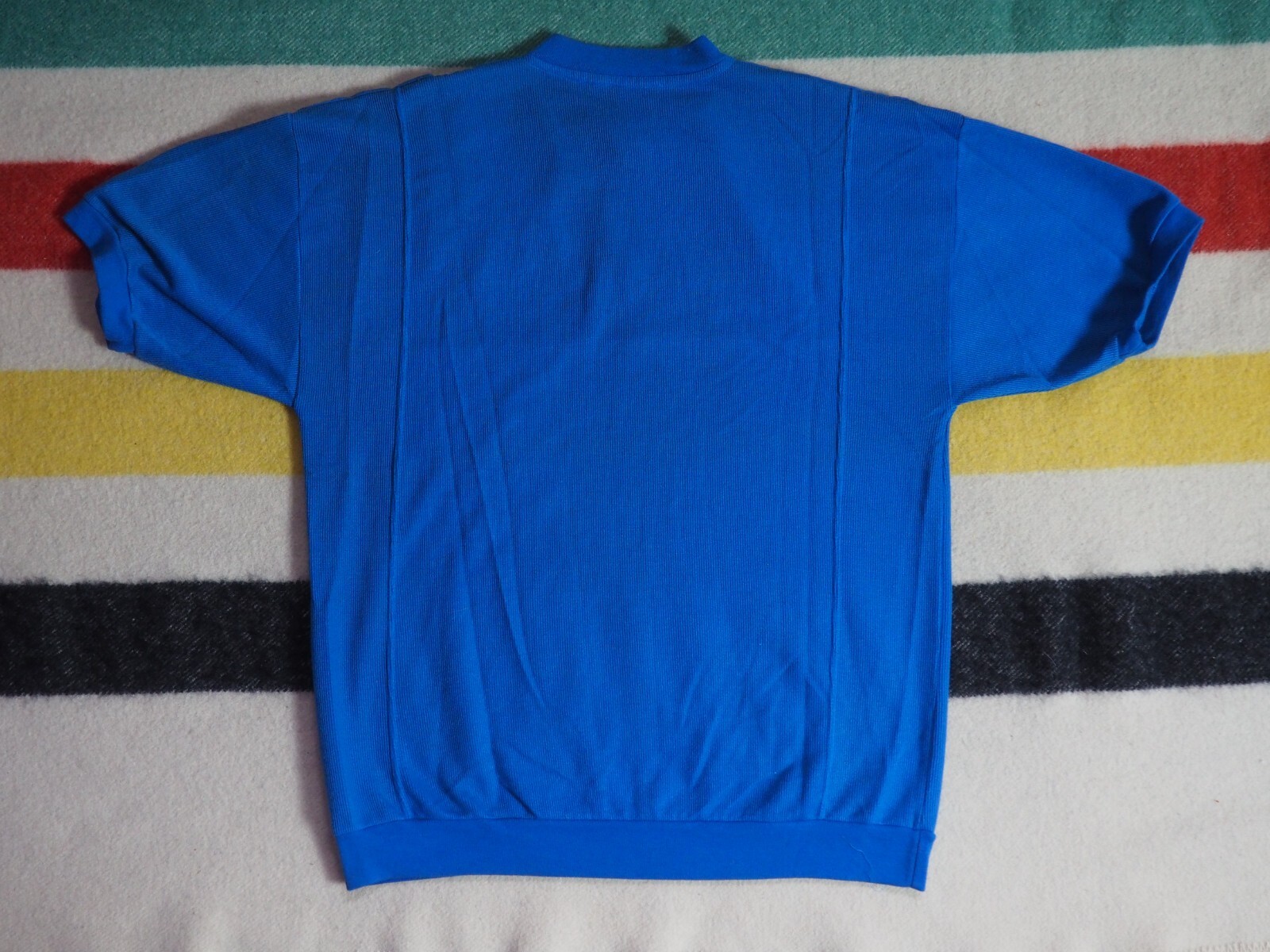 как выглядит VTG 80s Royal Blue Banded 1/4 Zip Ribbed Pocket Polo Bowling Shirt Tee Mens L фото