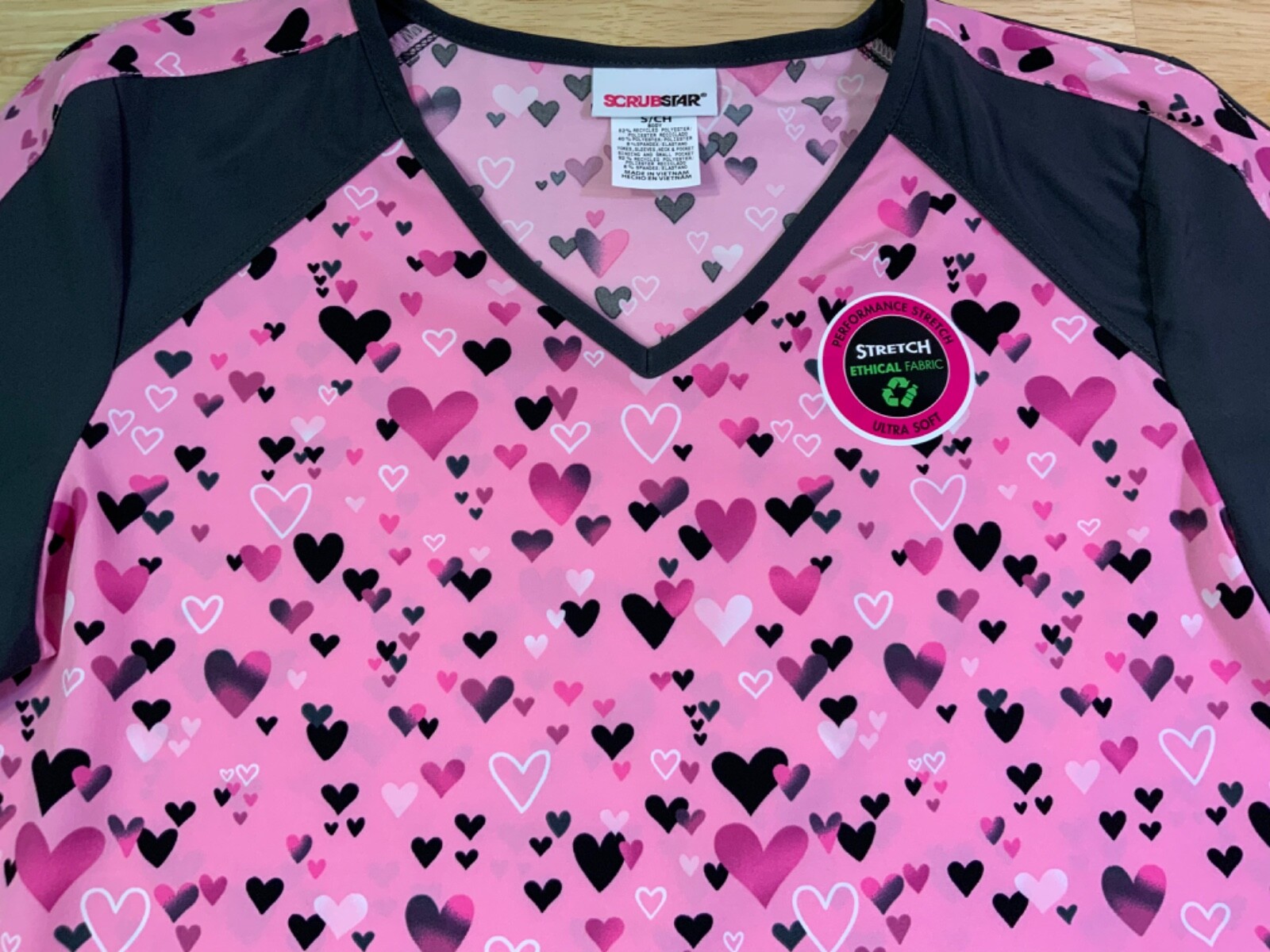New Women's Scrub Star Scrub Top Pinks Gray with Hearts--Nice Looking