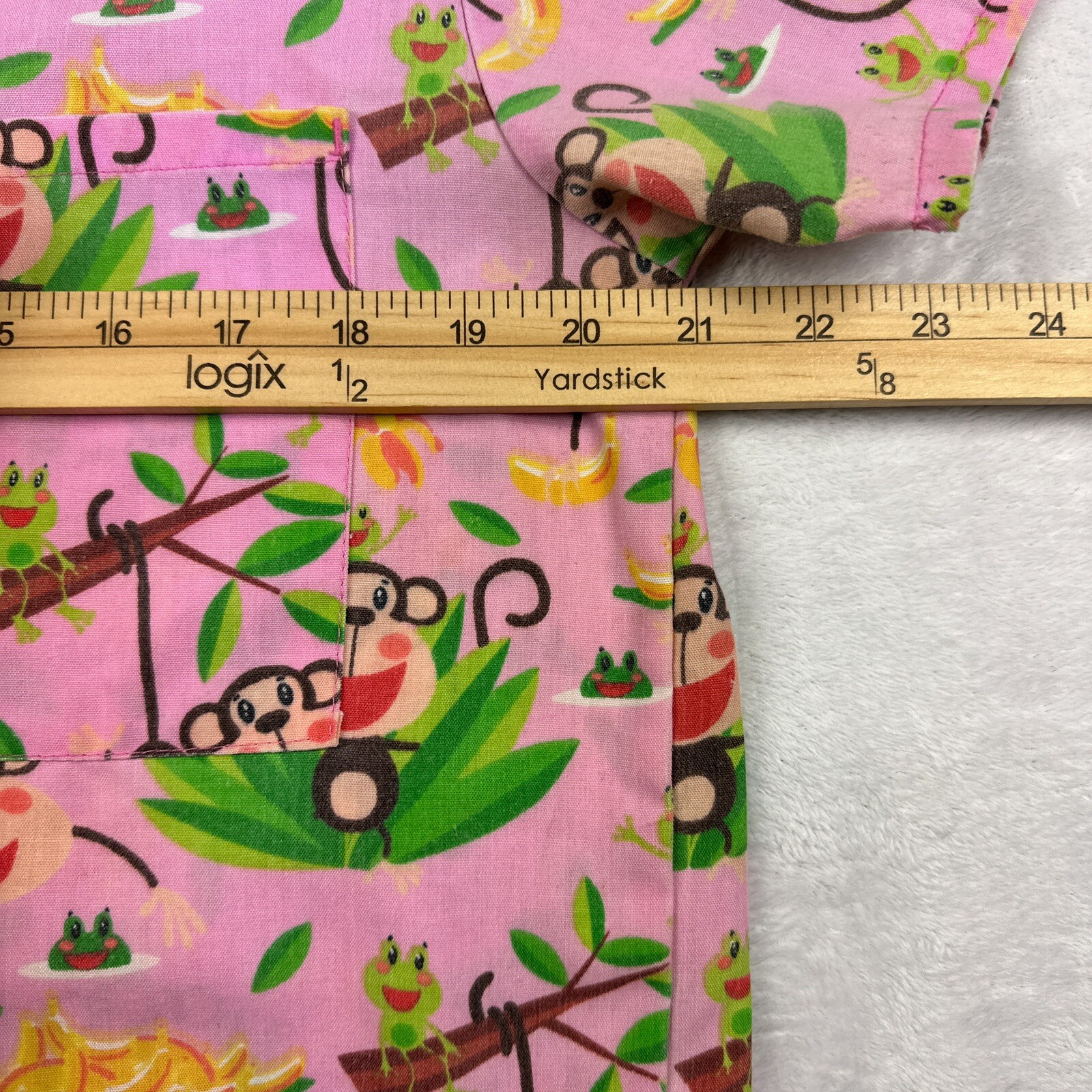 Just Love Scrub Top Womens Small Pink V-Neck 3 Pocket Monkey Bananas Frog