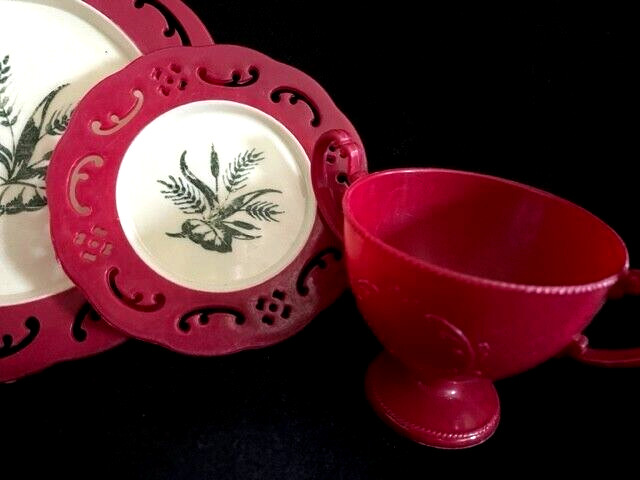Vintage 1950's Child's Plastic Play Kitchen Dinnerware 4 Pieces