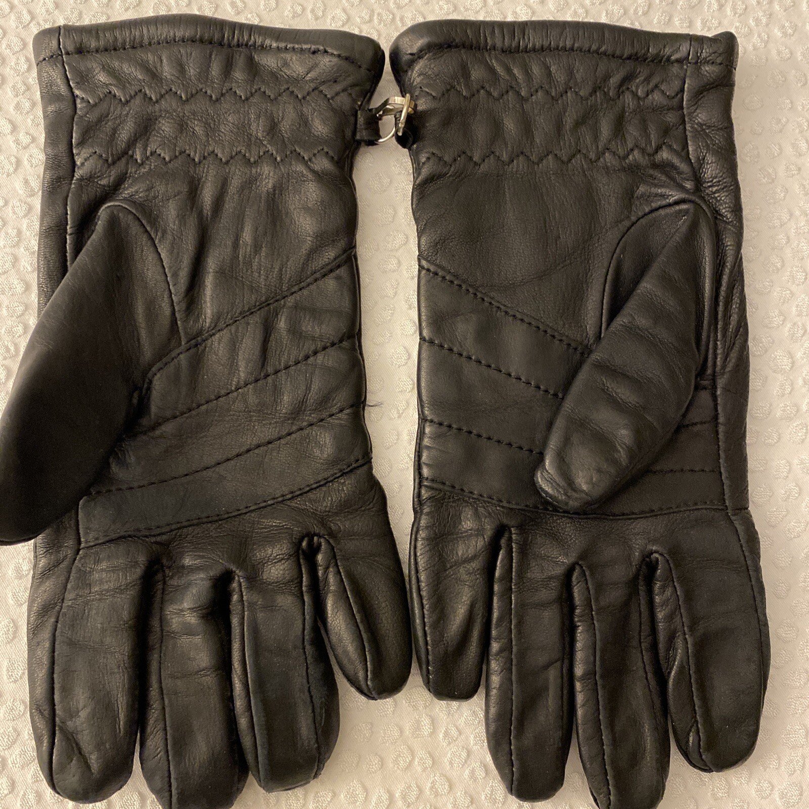 как выглядит Vintage Sz S Black Leather Gloves WPL Italian Leather Silk Lined Foam Insulation фото