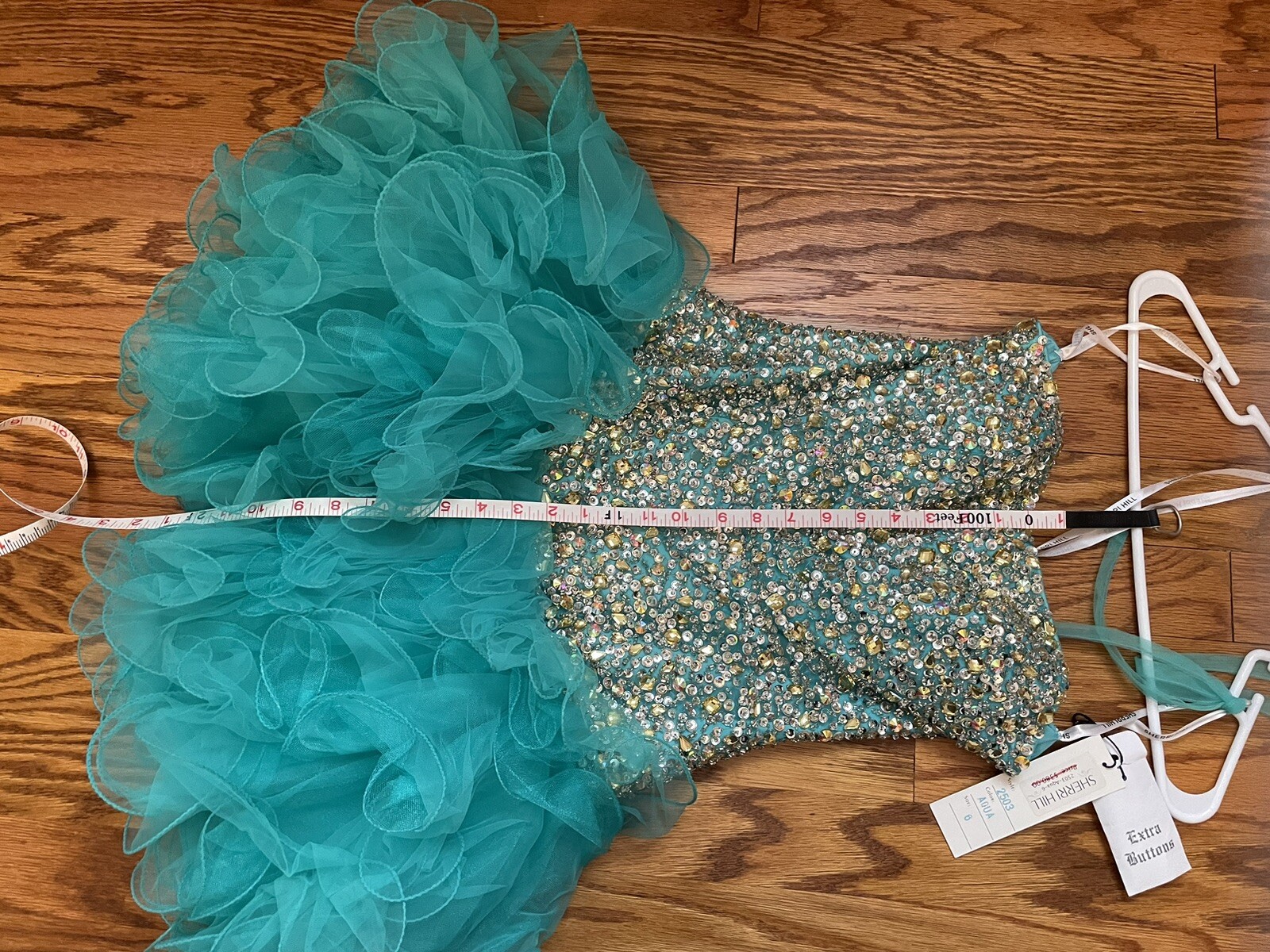 как выглядит Sherri Hill Blue FORMAL prom SHORT LENGTH DRESS- Tulle Sparkles Size 6 Bead Glam фото