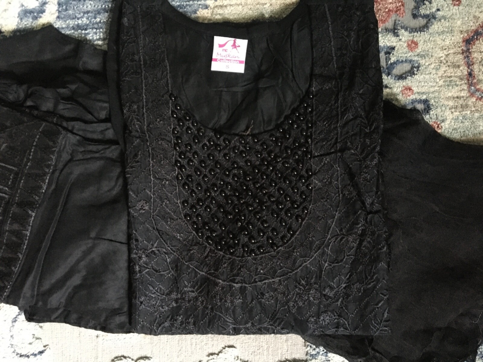Pakistani Indian Shalwar Kameez 3 Piece Set pearls S Black