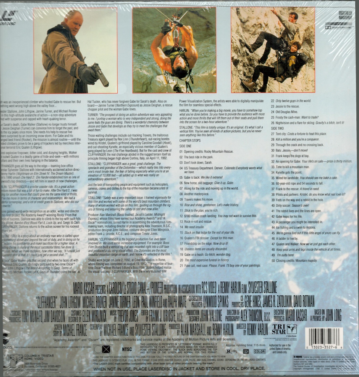 Cliffhanger 1993 - Deluxe Widescreen Letterboxed Laserdisc