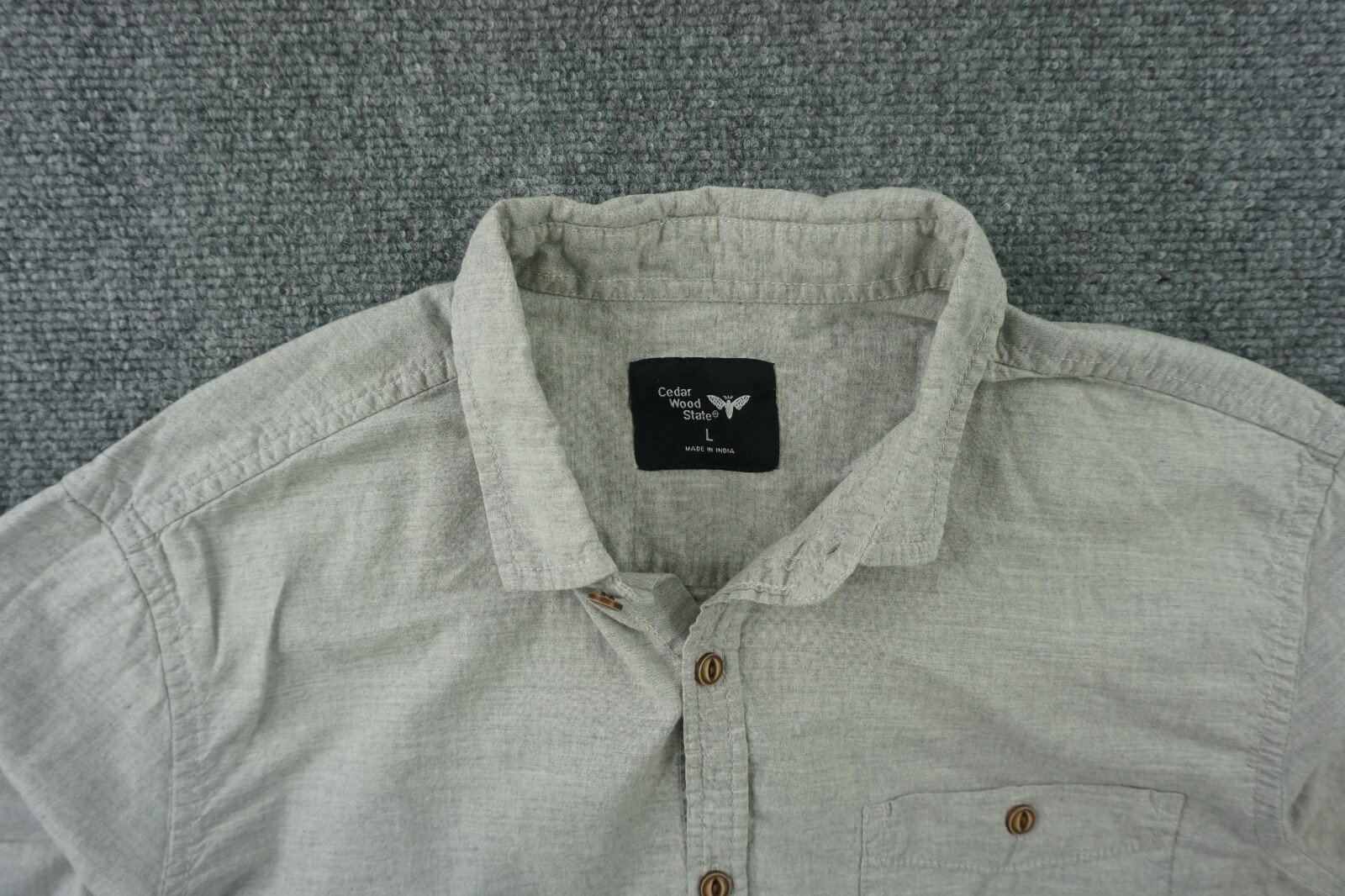 Cedar Wood State Shirt Mens Gray Large Button Front Long Sleeve