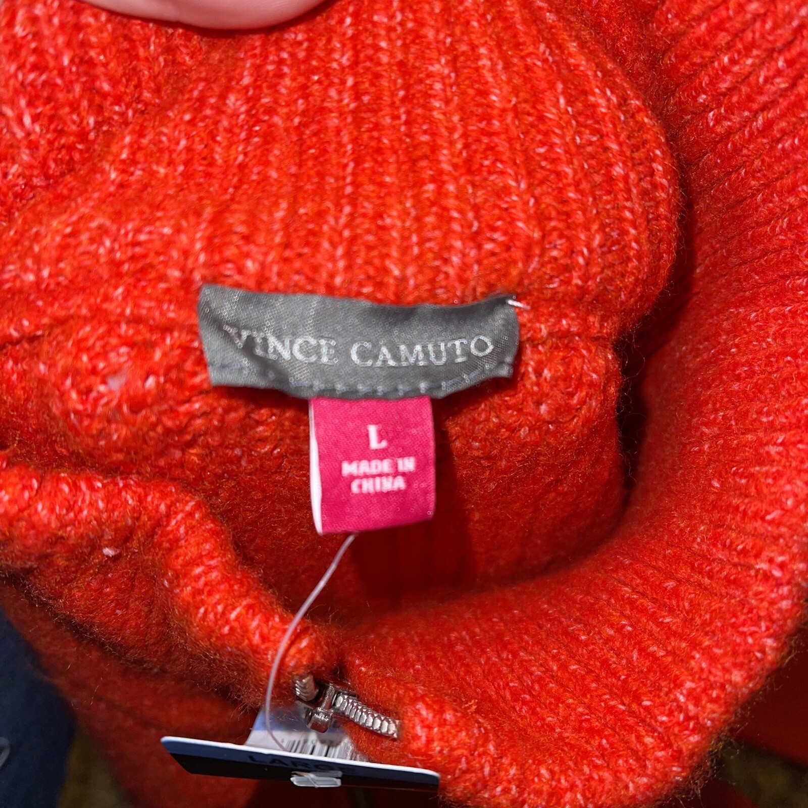как выглядит Vince Camuto Half Zip Pullover Cable Knit Sweater Large Crossfire Red CV3452241 фото