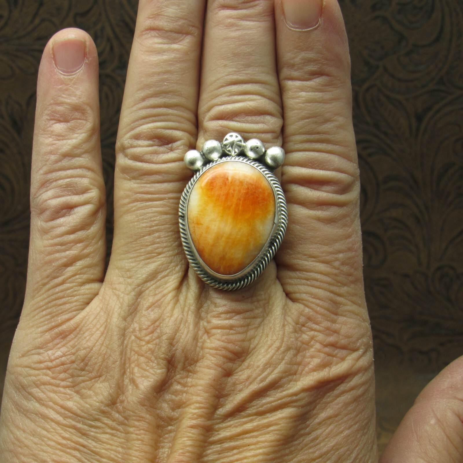как выглядит Large Satin Finish Sterling Silver Orange Spiny Oyster Ring Size 8.5 фото