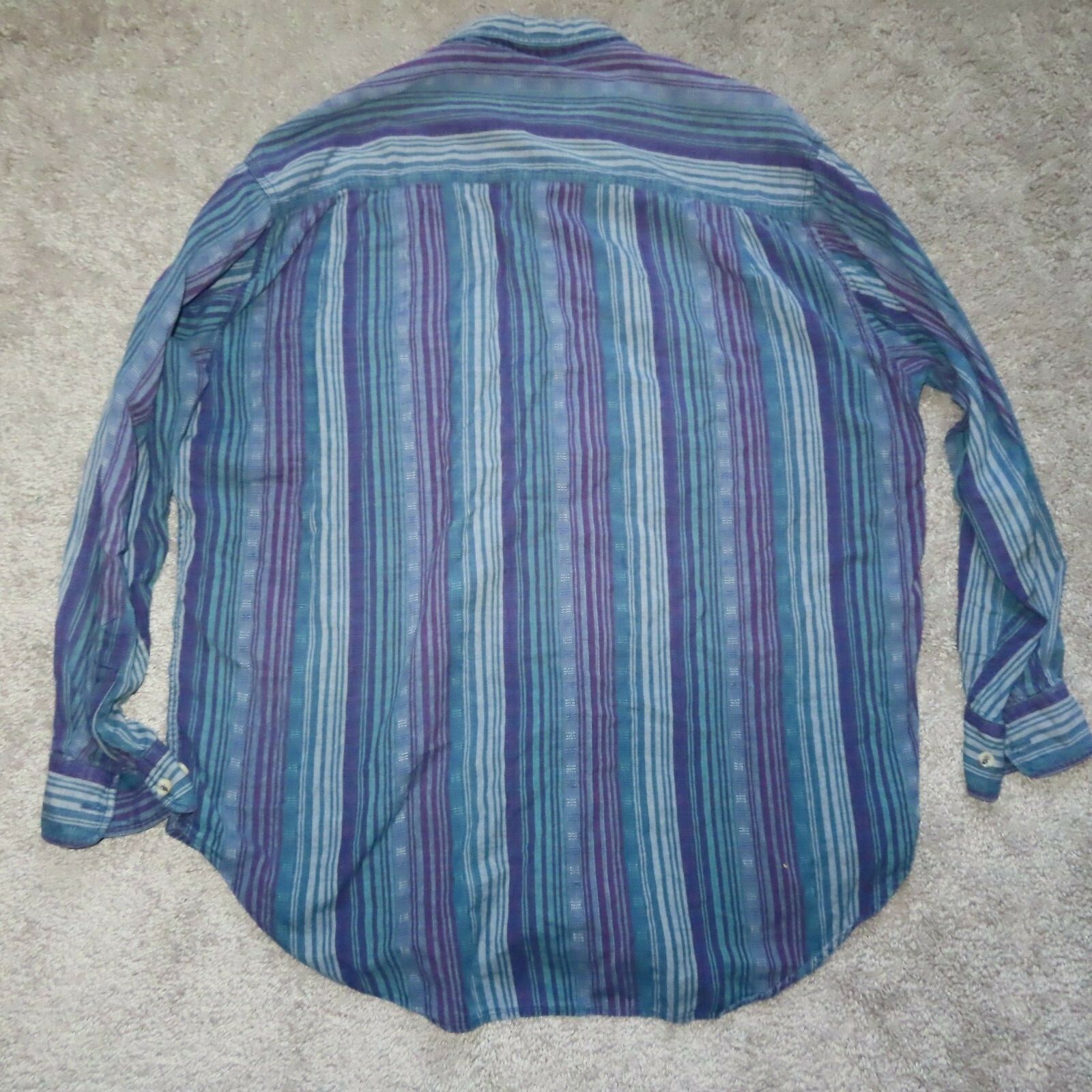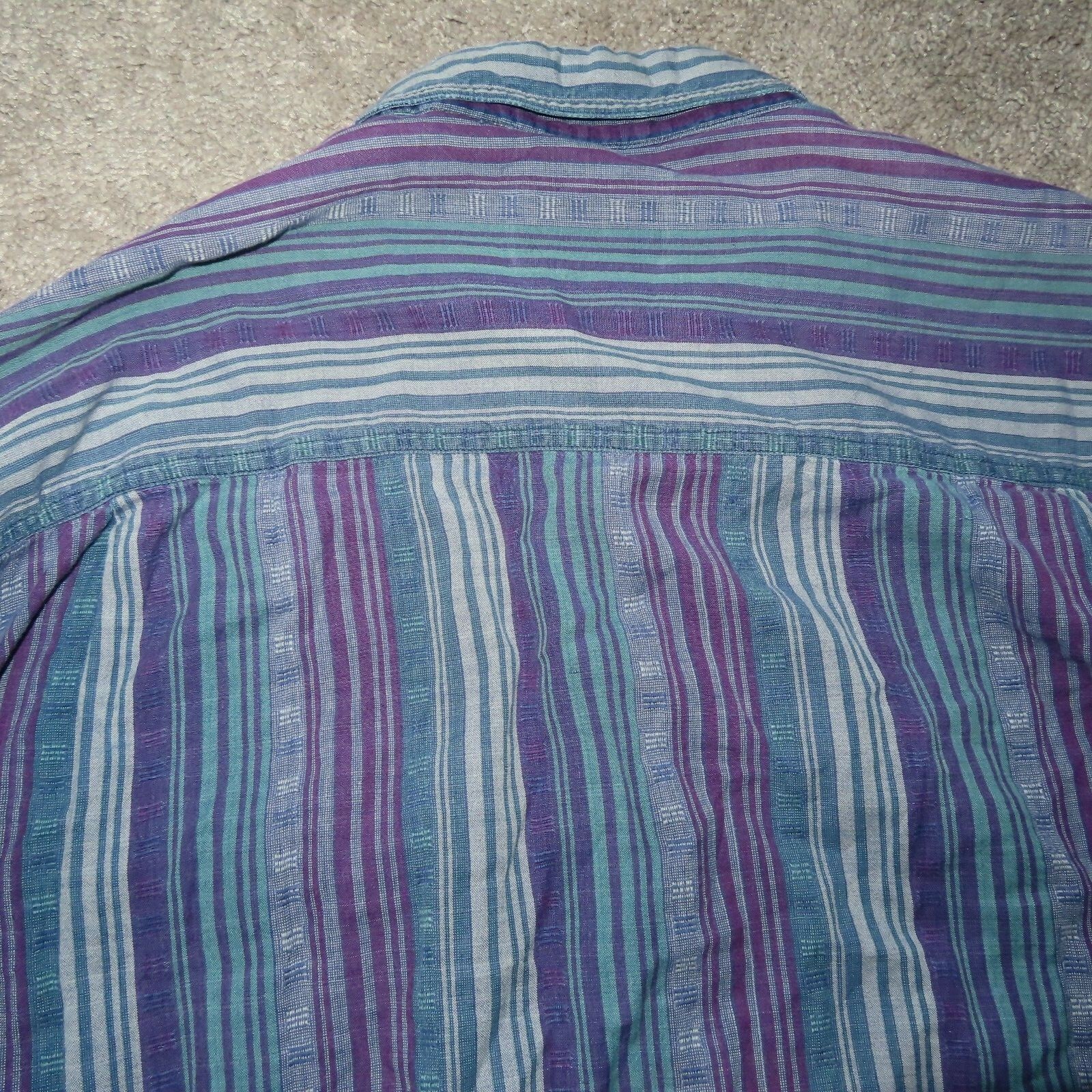Vintage AT Ease Boutique Mens sz Large vertical striped button up purple green