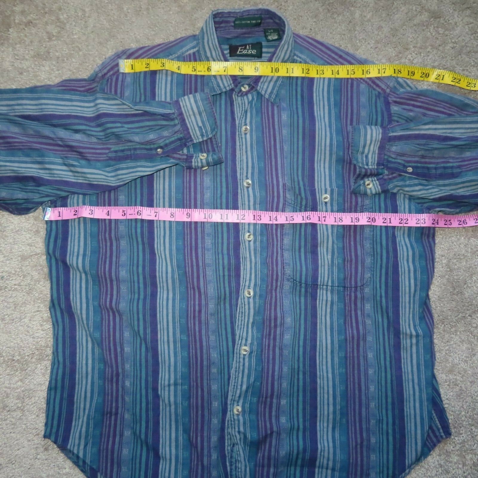 как выглядит Vintage AT Ease Boutique Mens sz Large vertical striped button up purple green фото