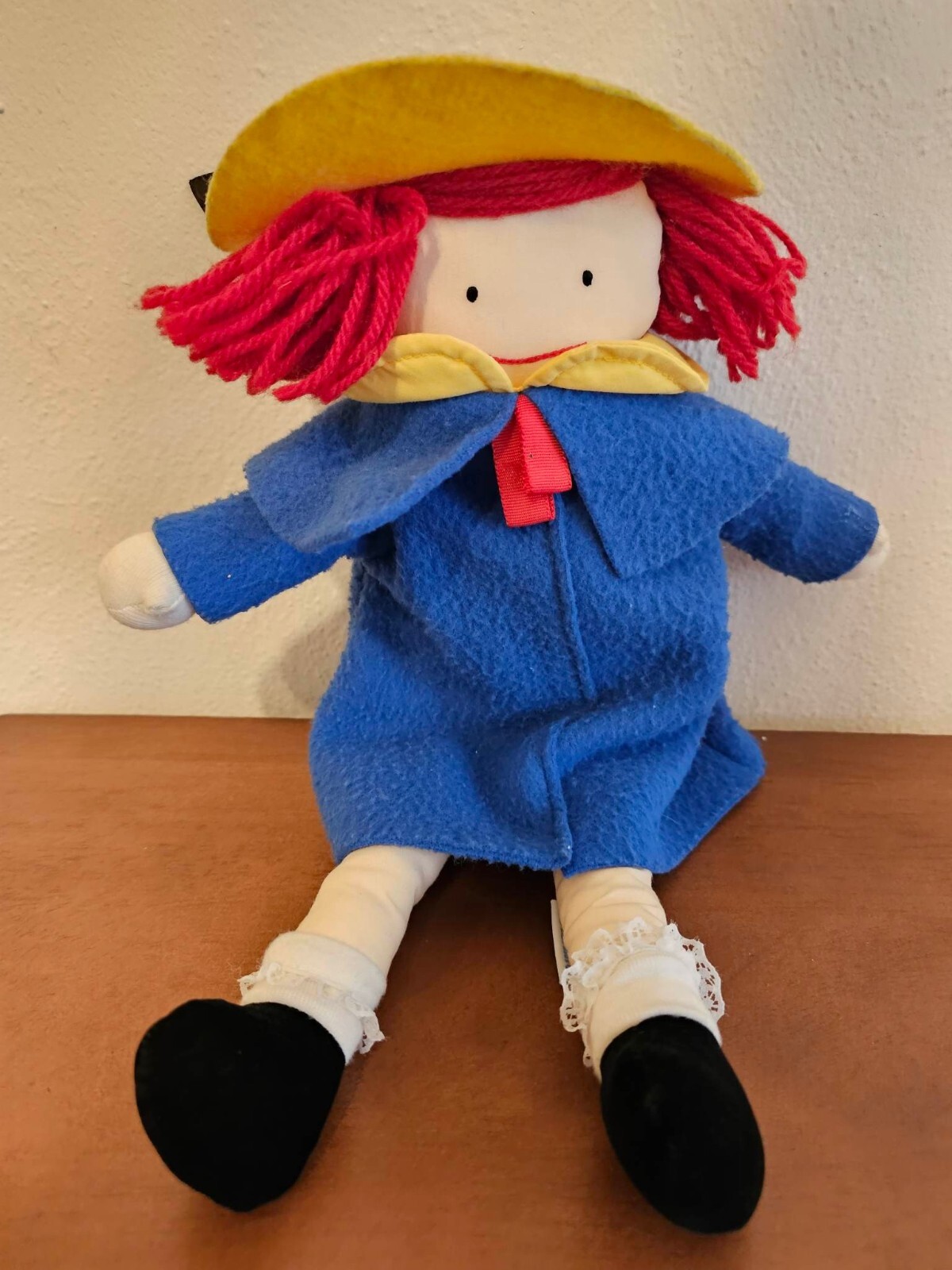 как выглядит Vintage 1990 Eden Madeline Plush Doll with Yellow Felt Hat Blue Dress-Used фото