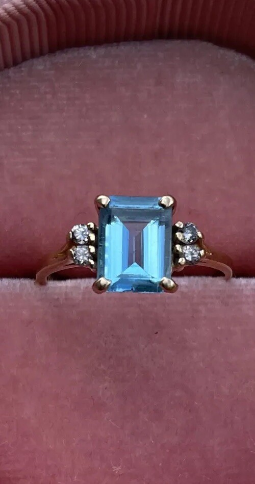 как выглядит 14k Solid Gold Blue Topaz And Diamond Ring фото