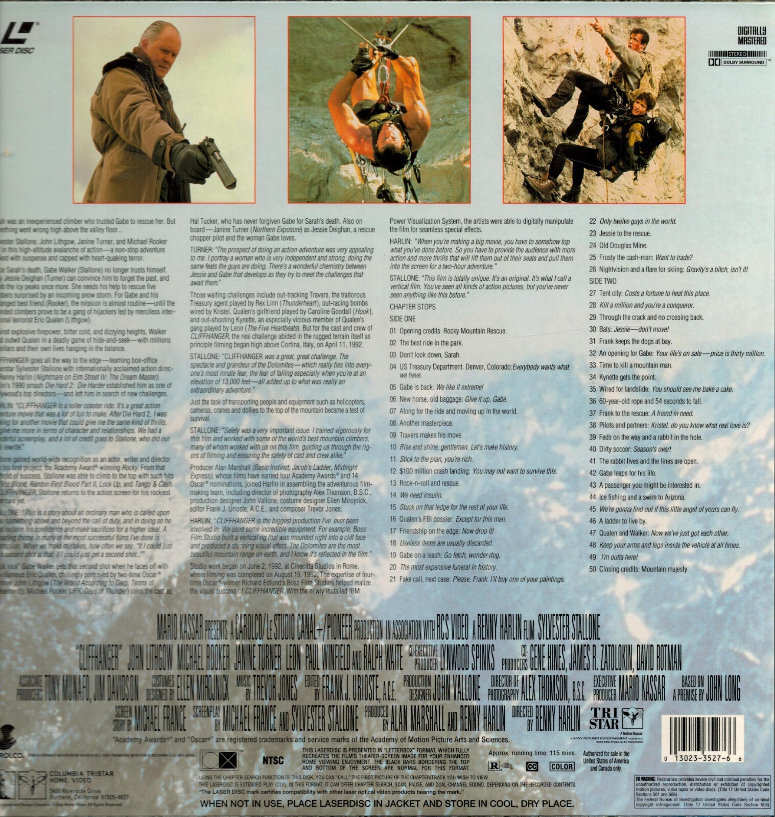 Cliffhanger Laser Disc Movie Deluxe Widescreen Version Stallone
