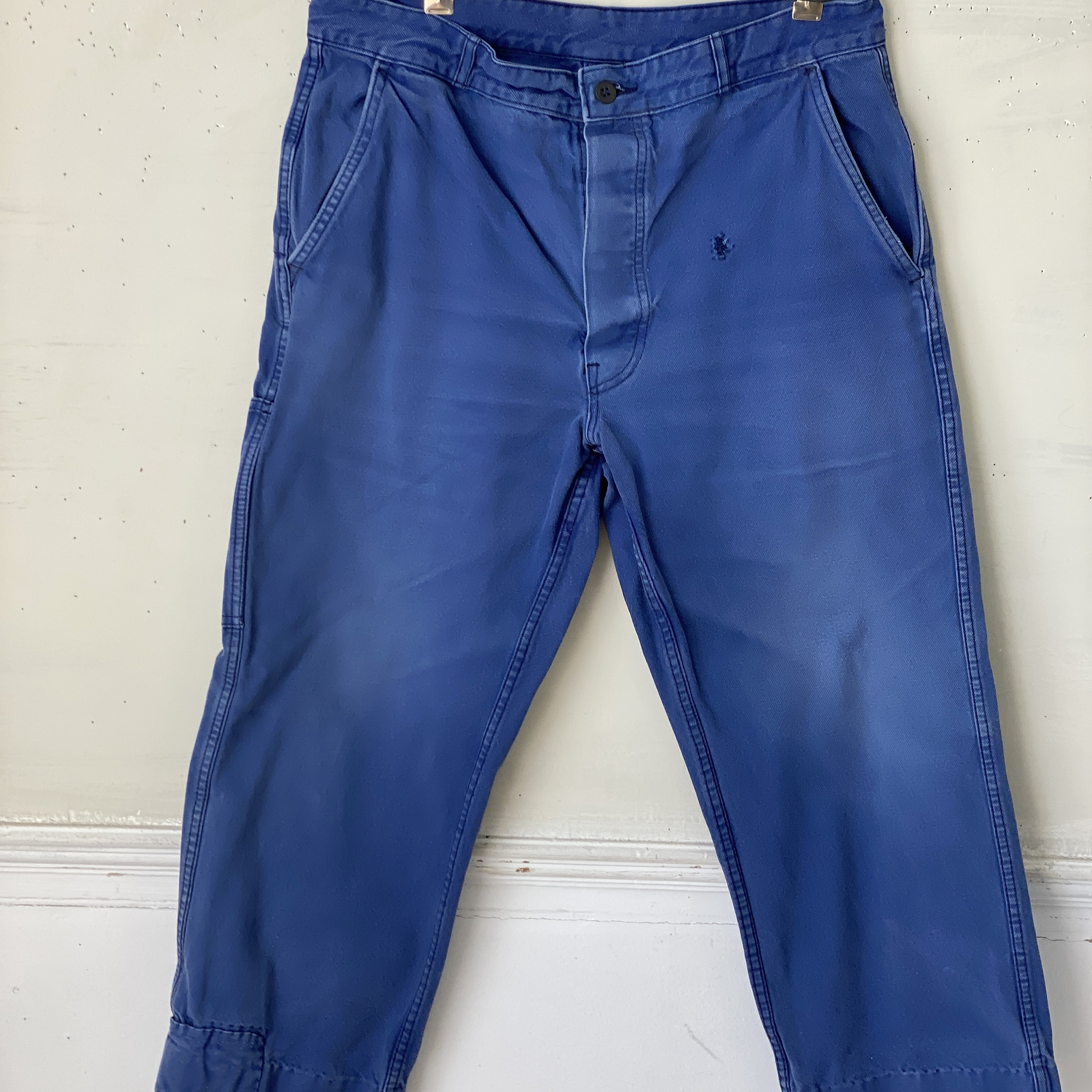 • Vintage French Work Wear Pants Workwear Dark Blue Denim Jeans Faded Hipster Tro