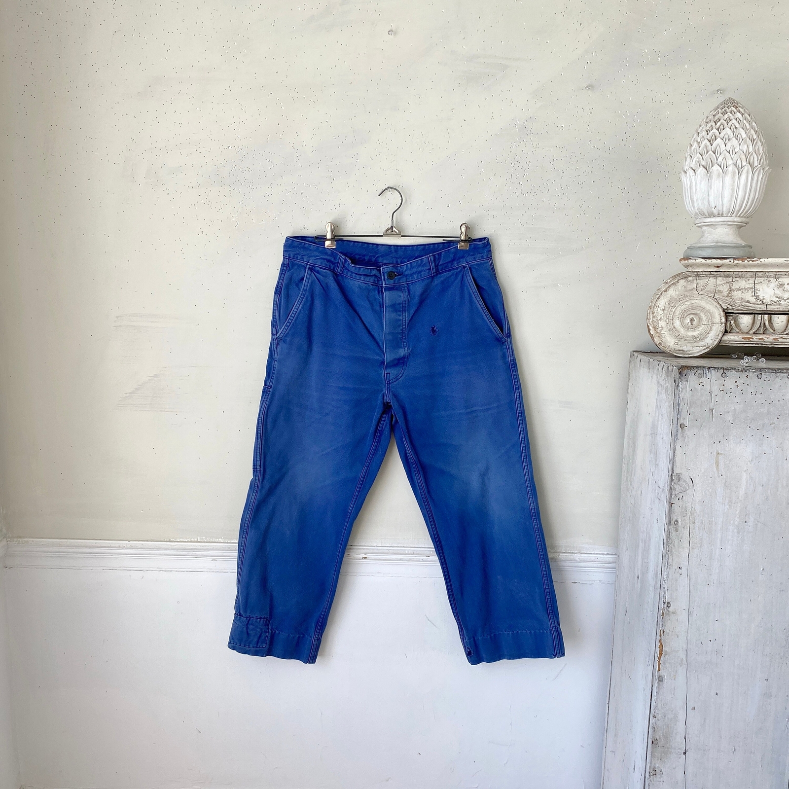Vintage French Work Wear Pants Workwear Dark Blue Denim Jeans Faded Hipster Tro