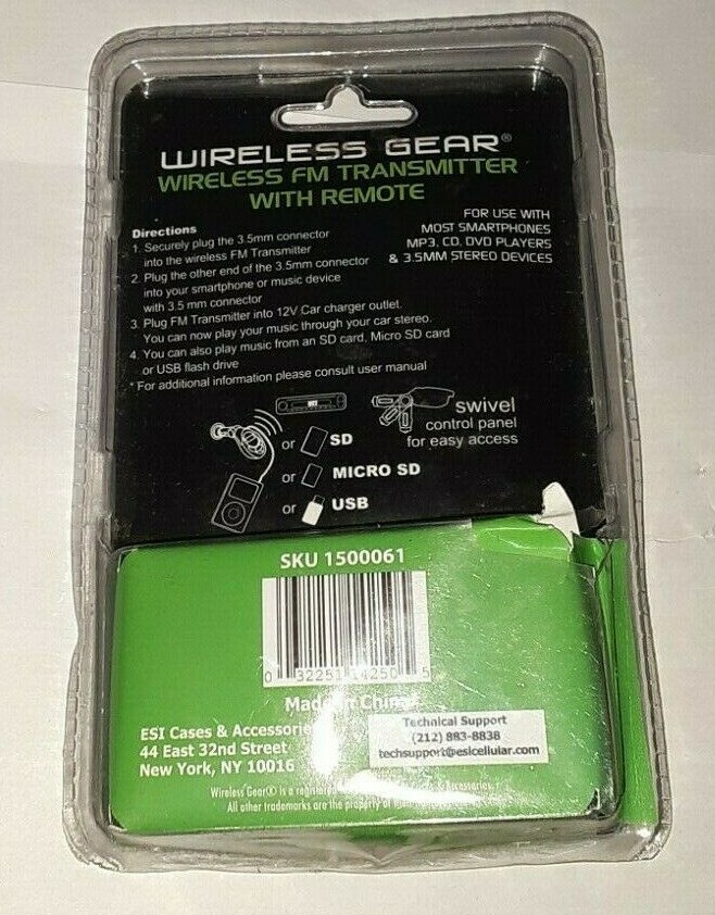 как выглядит WIRELESS GEAR WIRELESS FM TRANSMITTER w REMOTE FOR PHONES, MP3, CD, DVD sld nip фото