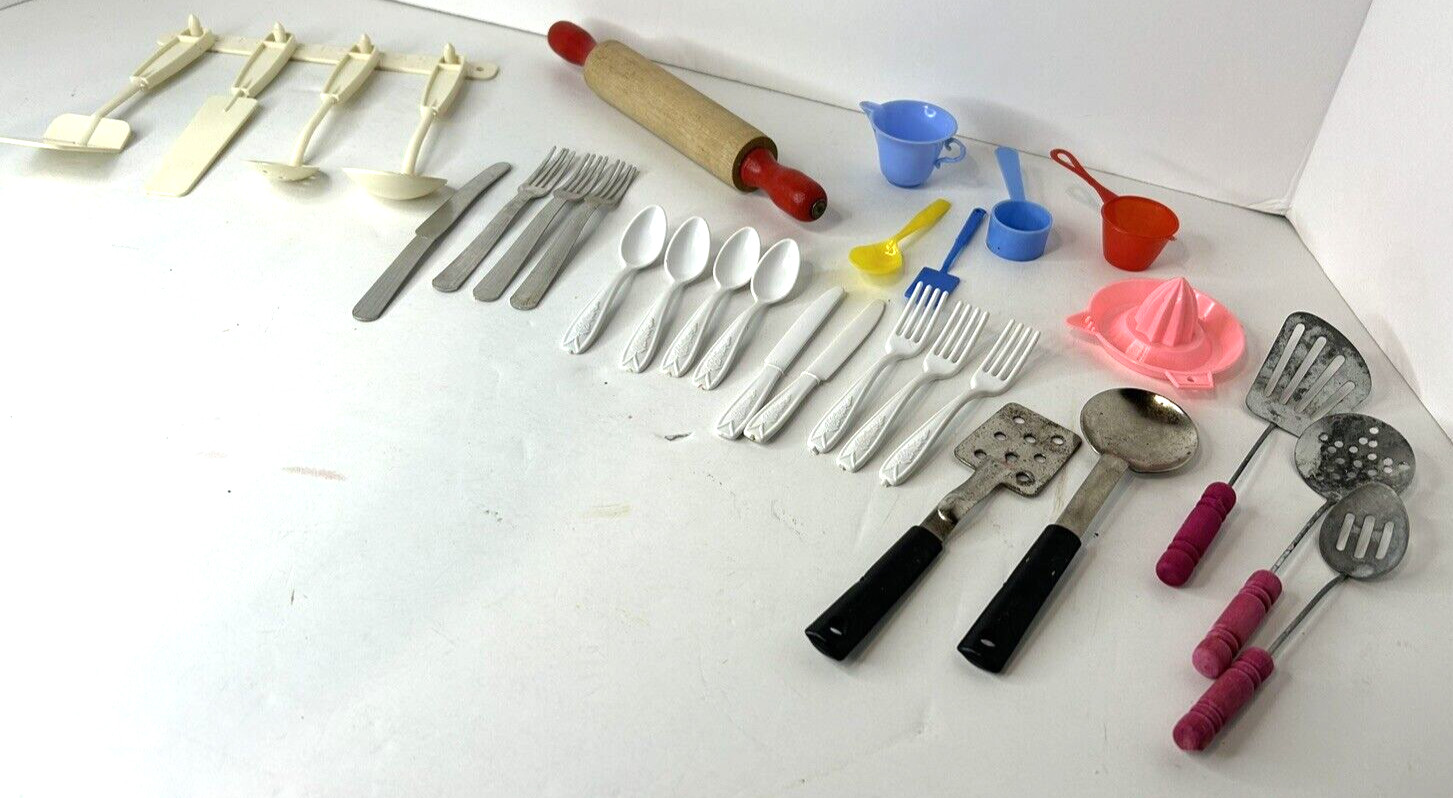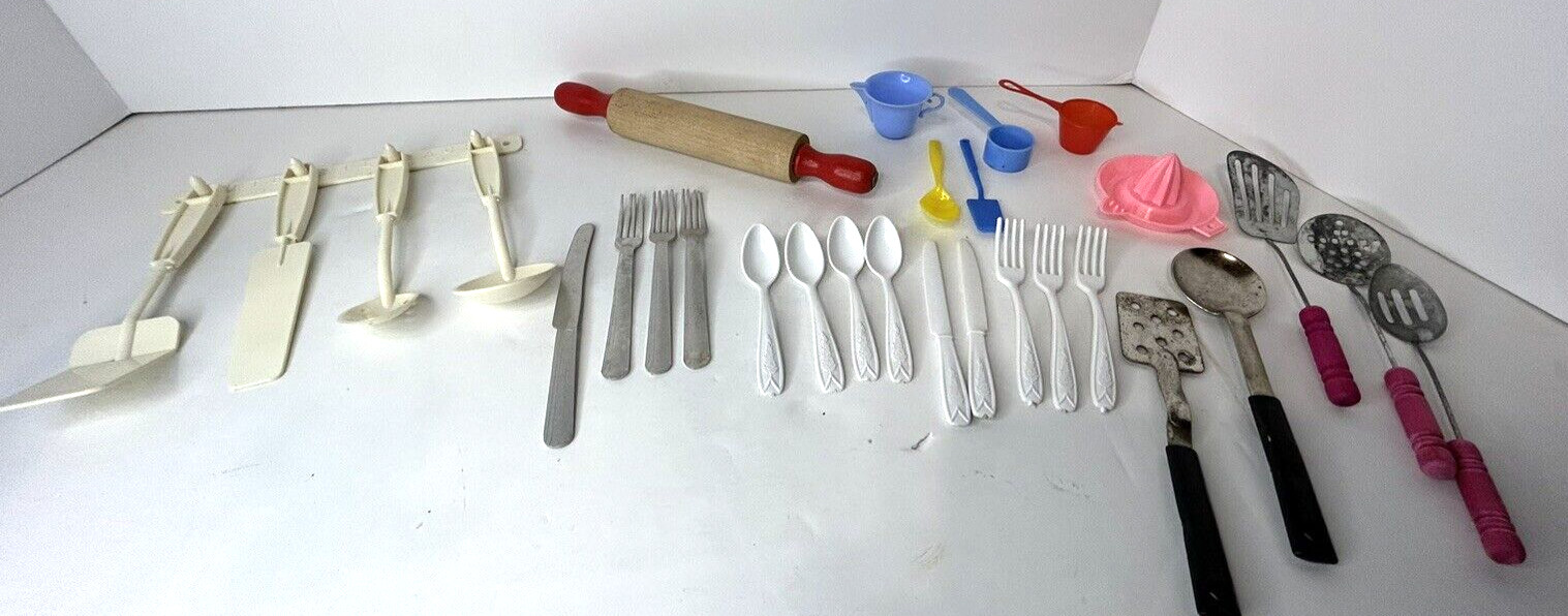 Children's Play Silver Ware Utensil Set - Made in Hong Kong - 60's - 30 Pieces